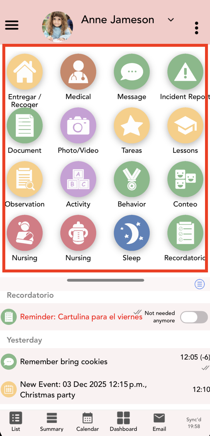 Any observation, photo, diary, activity, or milestone entries can be added to the portfolio. The entry can be added as soon as it is created, or after it has already been saved. If the entry has already been saved, edit the entry by tapping on the entry in the entry list, then choose the 'add to portfolio' option and re-save the entry.