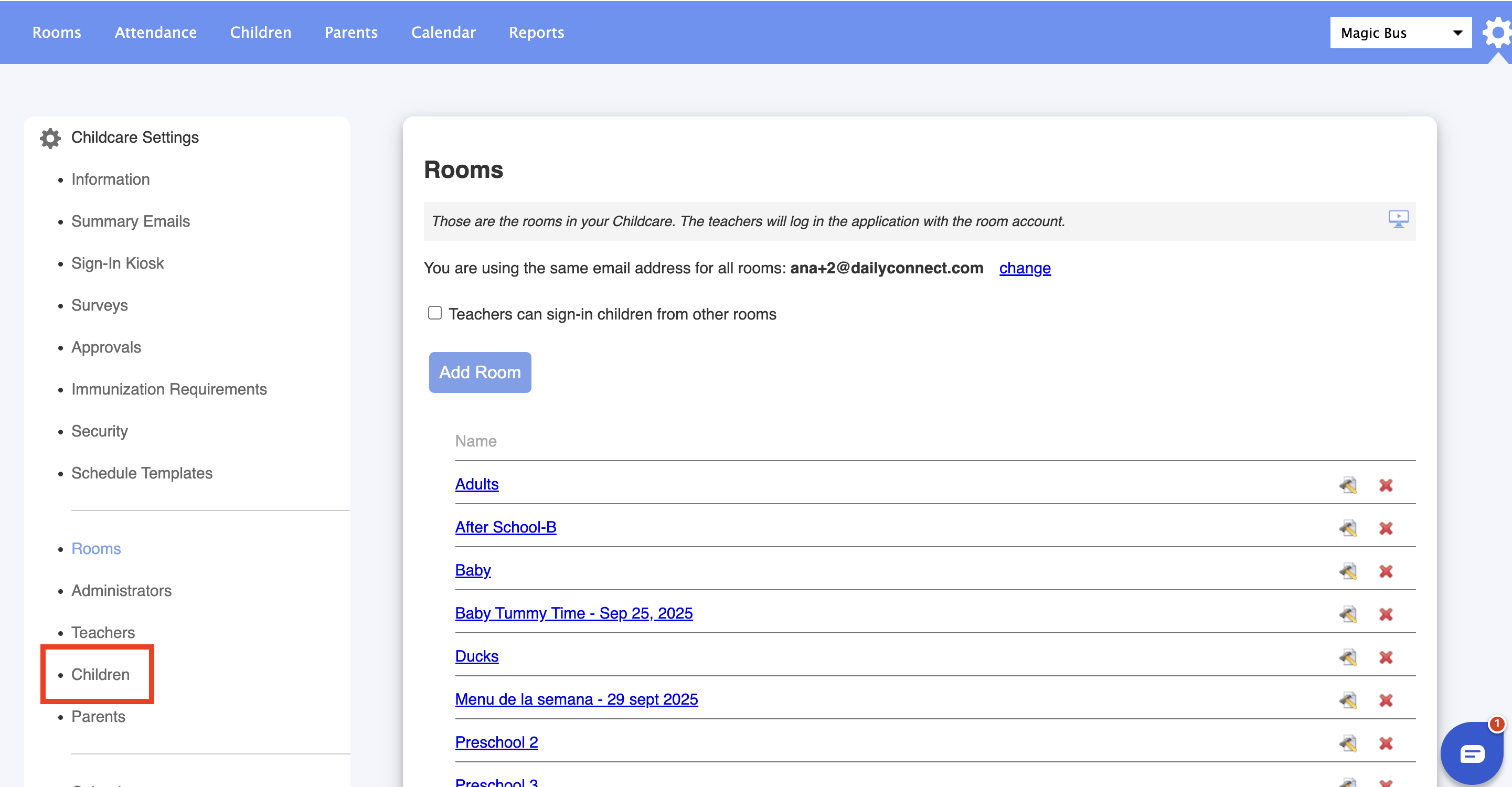 Once all classrooms are created, you can add children to classrooms from the Children page.