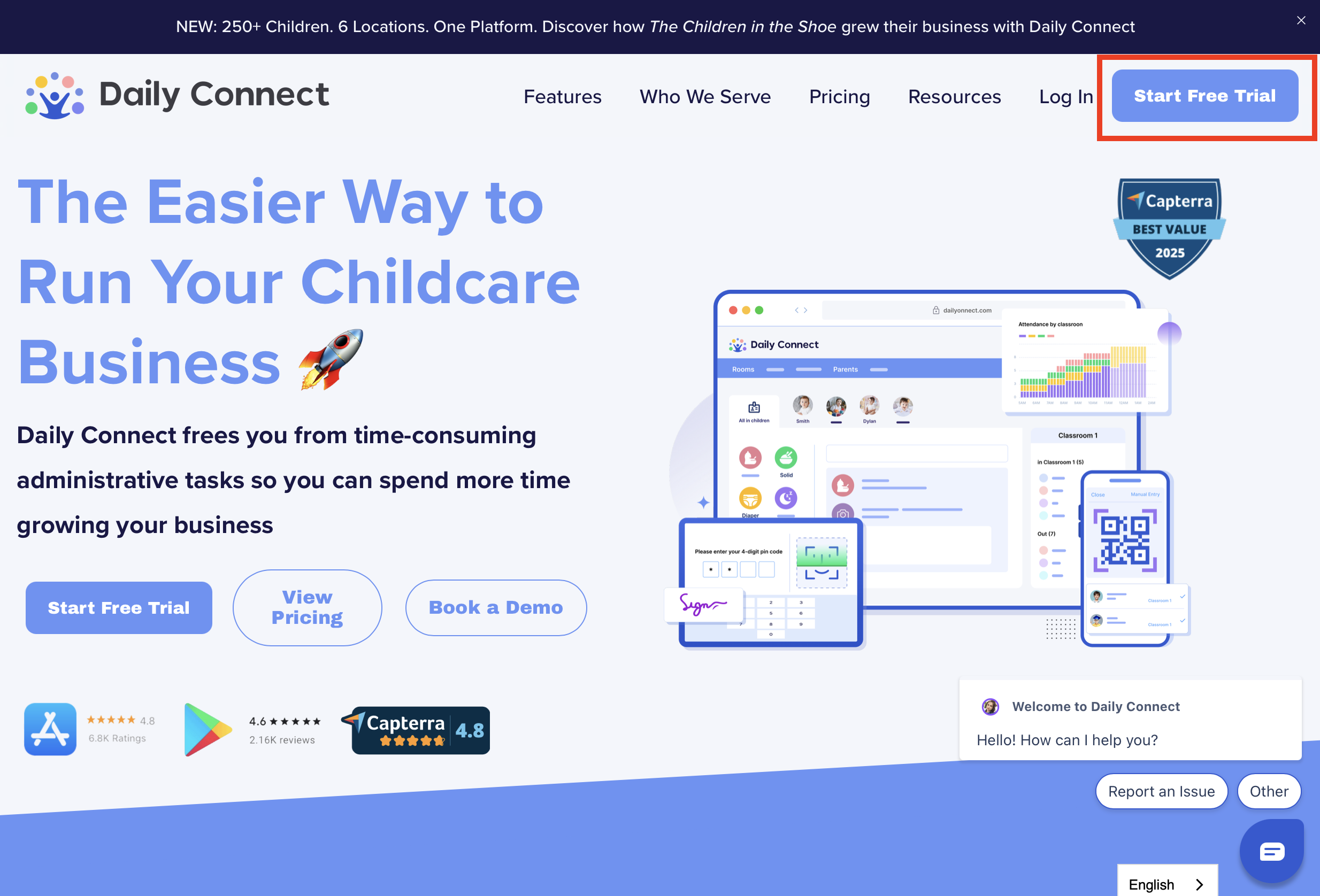 First, select Start Free Trial. Please note, the creation of an account can only be done on the Daily Connect web application.