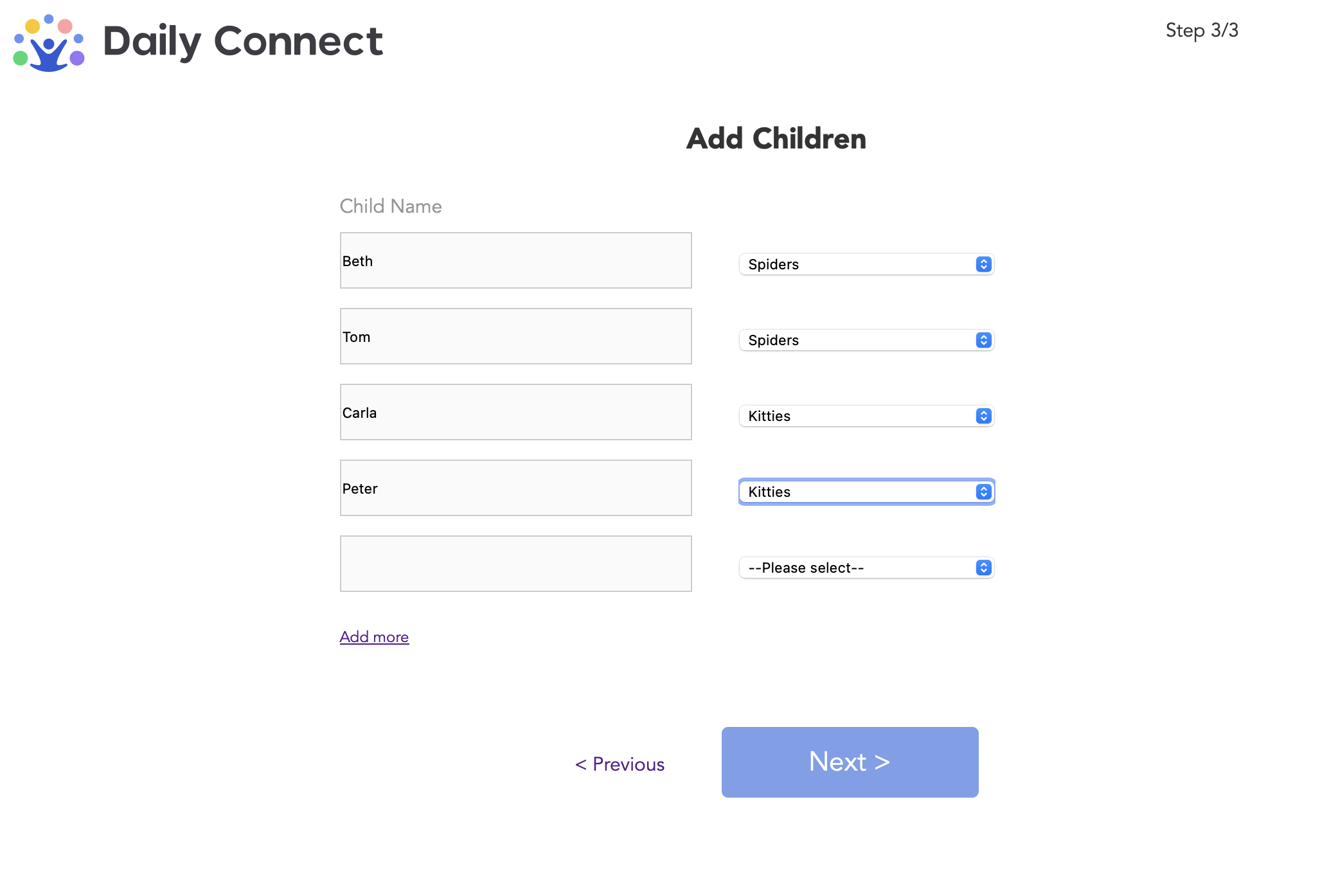 You can skip this step. Instead, email a list of children and their classrooms to Daily Connect to enter them for you.