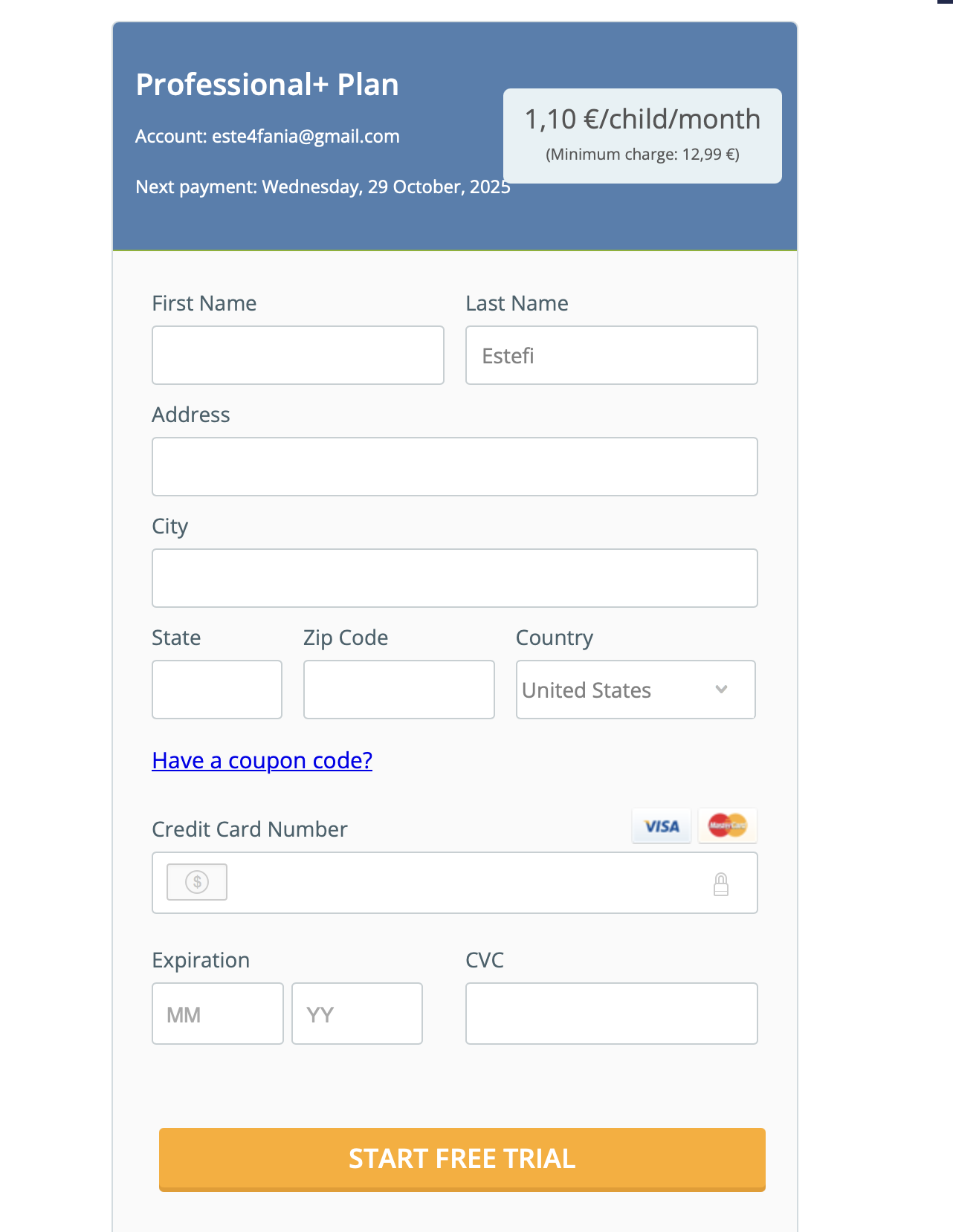Lastly, enter your personal and banking details and select START FREE TRIAL.