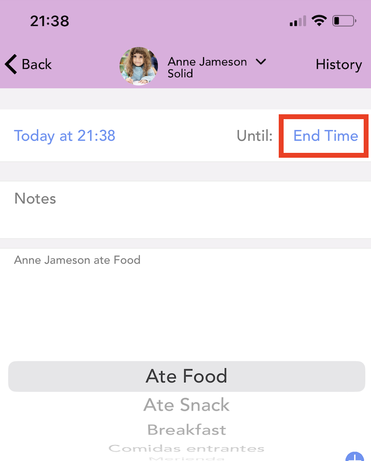 To view a child’s entry history, select the entry menu at the bottom of the screen. These are arranged in descending chronological order.
