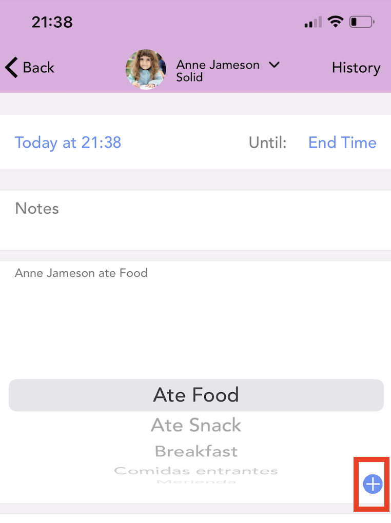 Select the drop-down menu at the top of your screen, then select the child for whom to make an entry