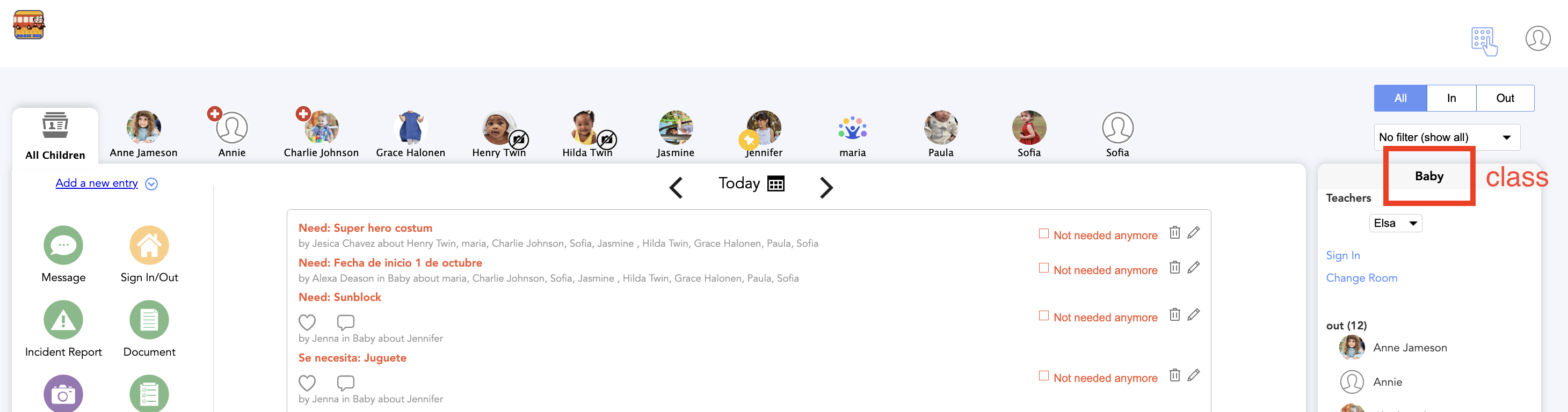 As a teacher, you can document every part of your day in the classroom. You can record various events during a child’s day in the form of an entry. This entry will then be added to a child’s timeline, allowing their parent to get a glimpse into what their child has done for the day and be alerted of any critical issues.