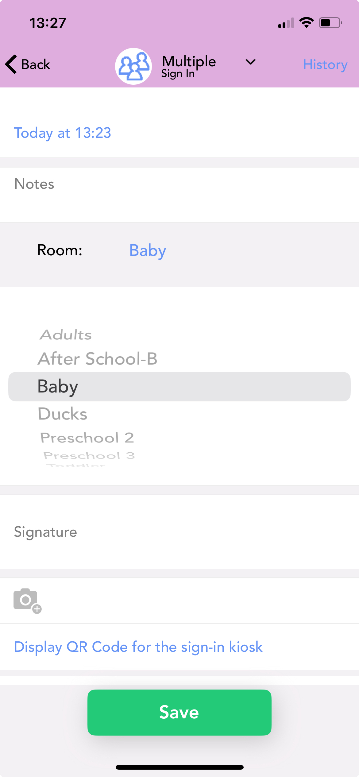 Another option is for parents to sign their child in/out of your classroom. The sign-in page is then opened on your classroom device.