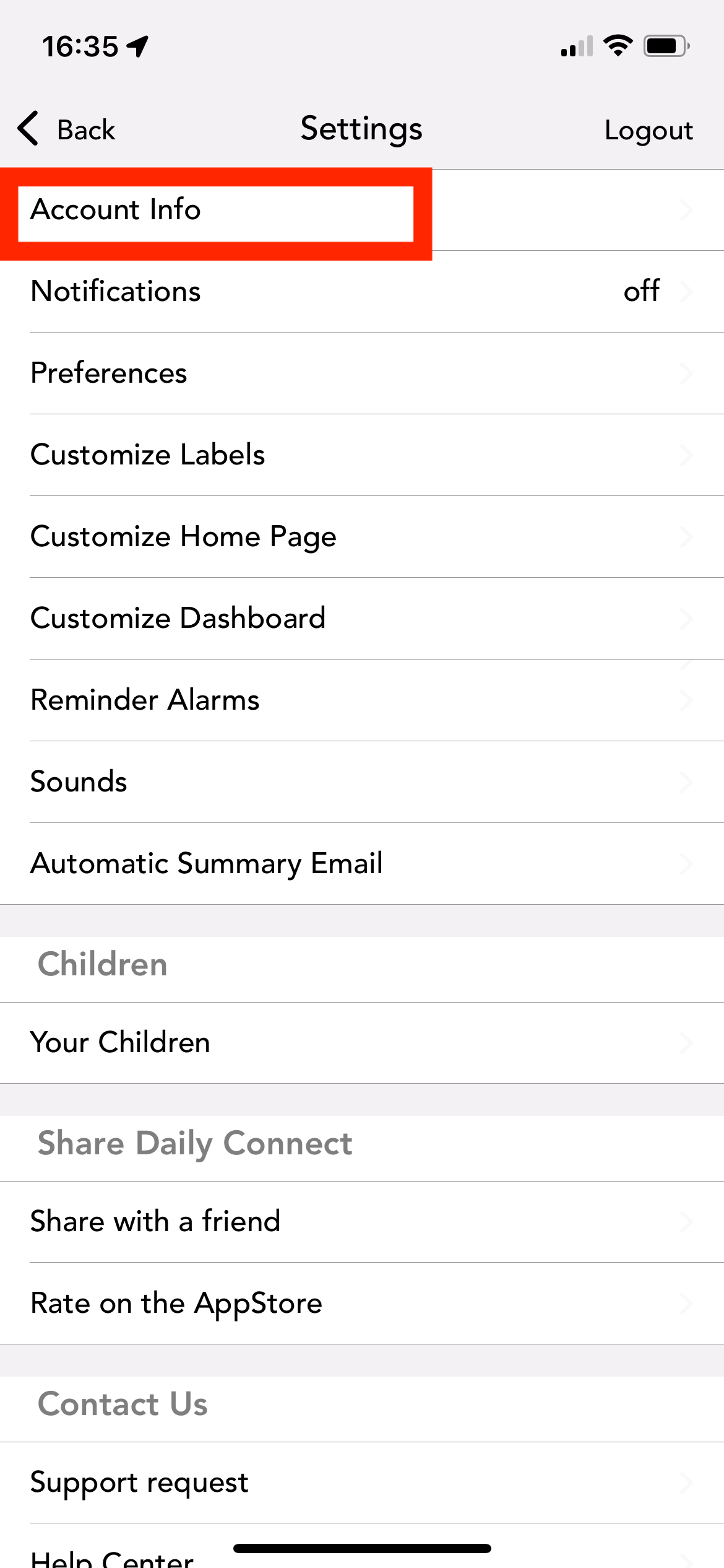 Follow the instructions below to enter or change your account details on the Daily Connect mobile app.
