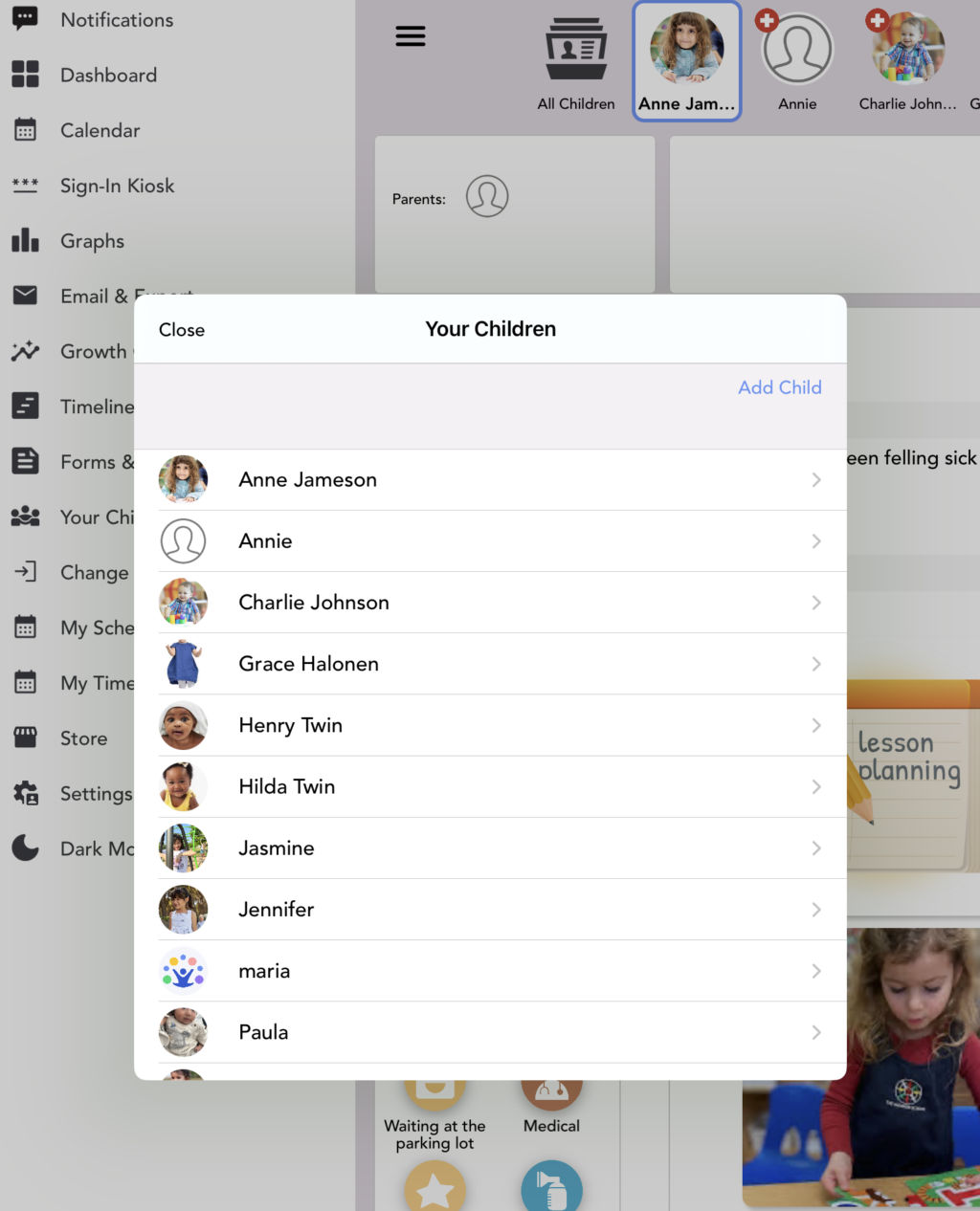 Follow the instructions below to update or add information to a child’s account using the Daily Connect app on an iPad.