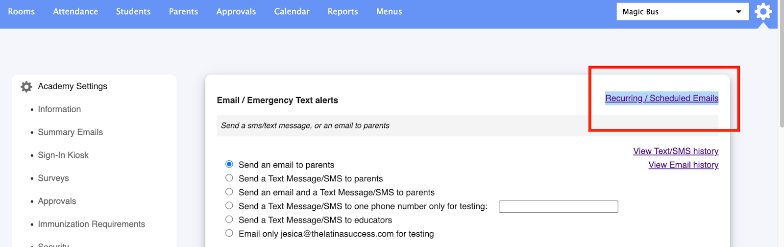 Targeted Messages: Bulk emails and texts from administrators now go only to Parents, not Extended Family Members, Nannies, or Authorized Pickups — so important updates reach the right people.