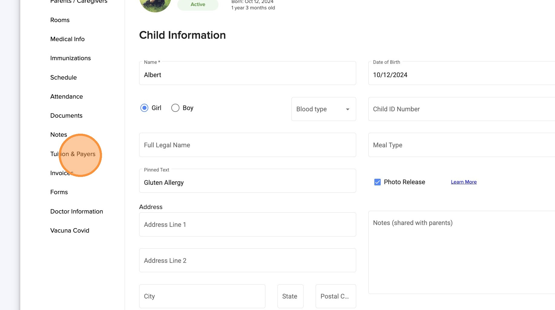 3. Click "Tuition & Payers"