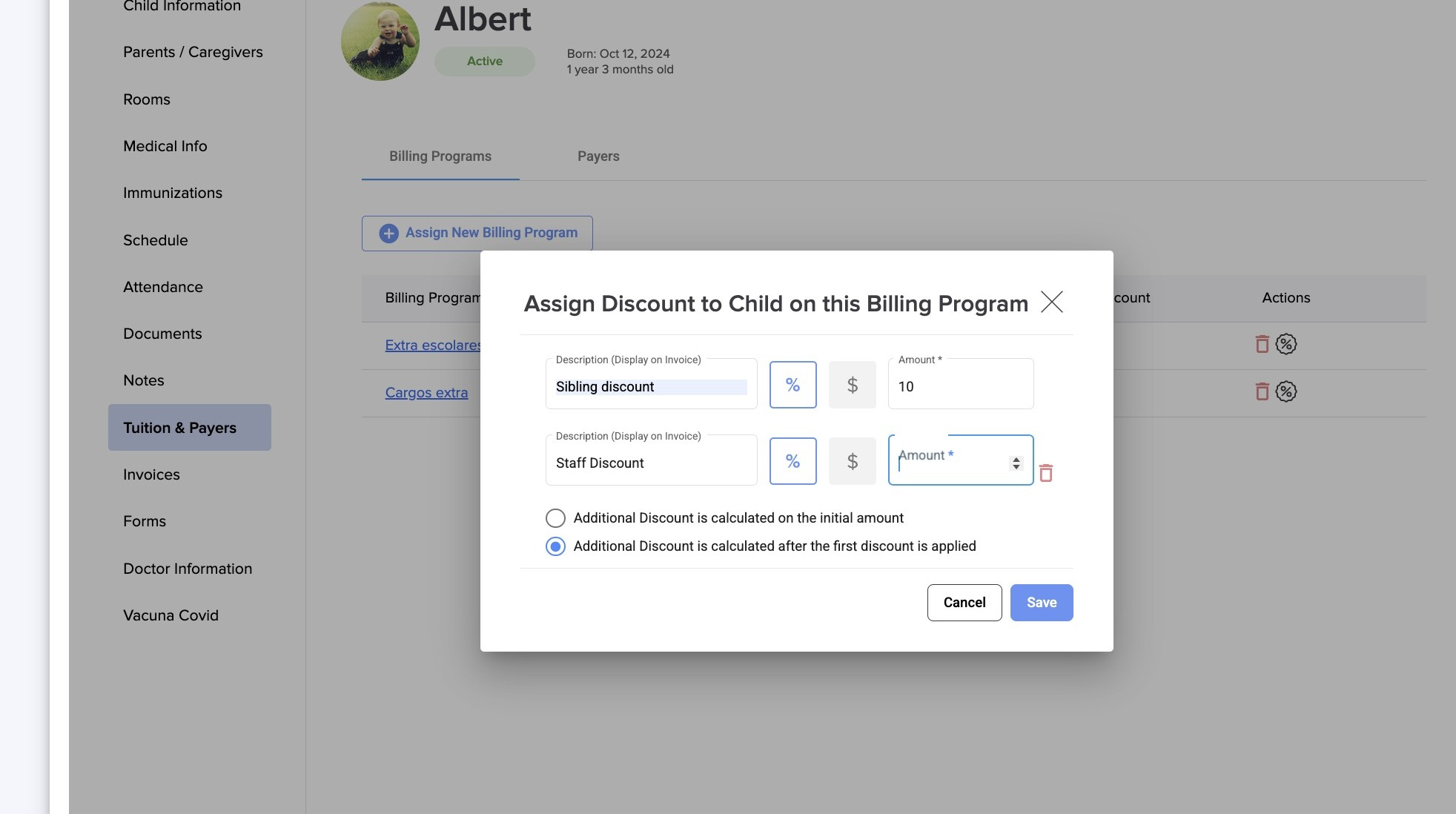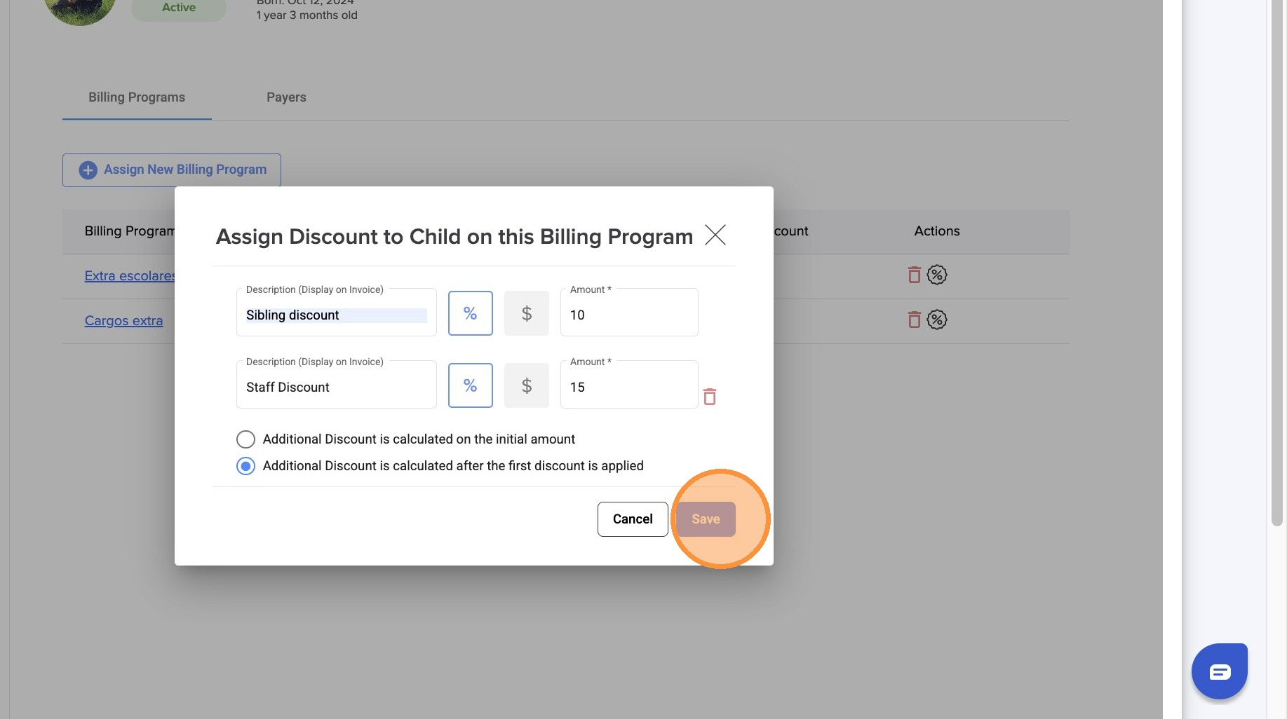 Apply more flexible pricing by adding a second discount to a child.