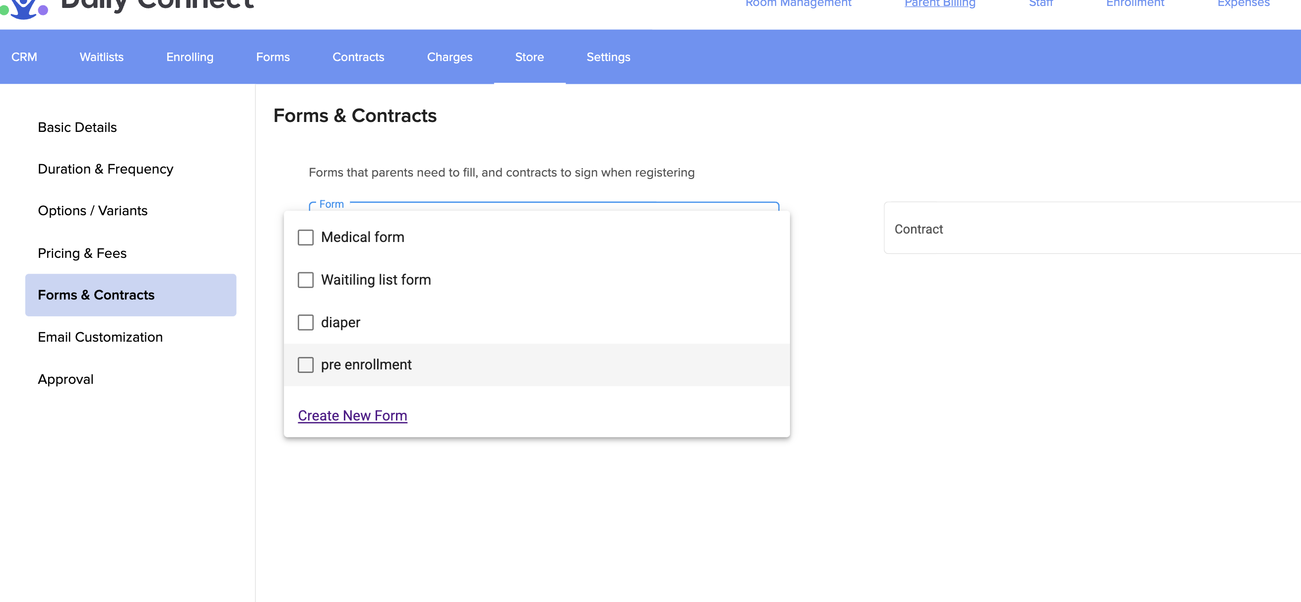 8. In this section, you can associate forms and/or contracts , where you can collect the necessary information to offer your service.