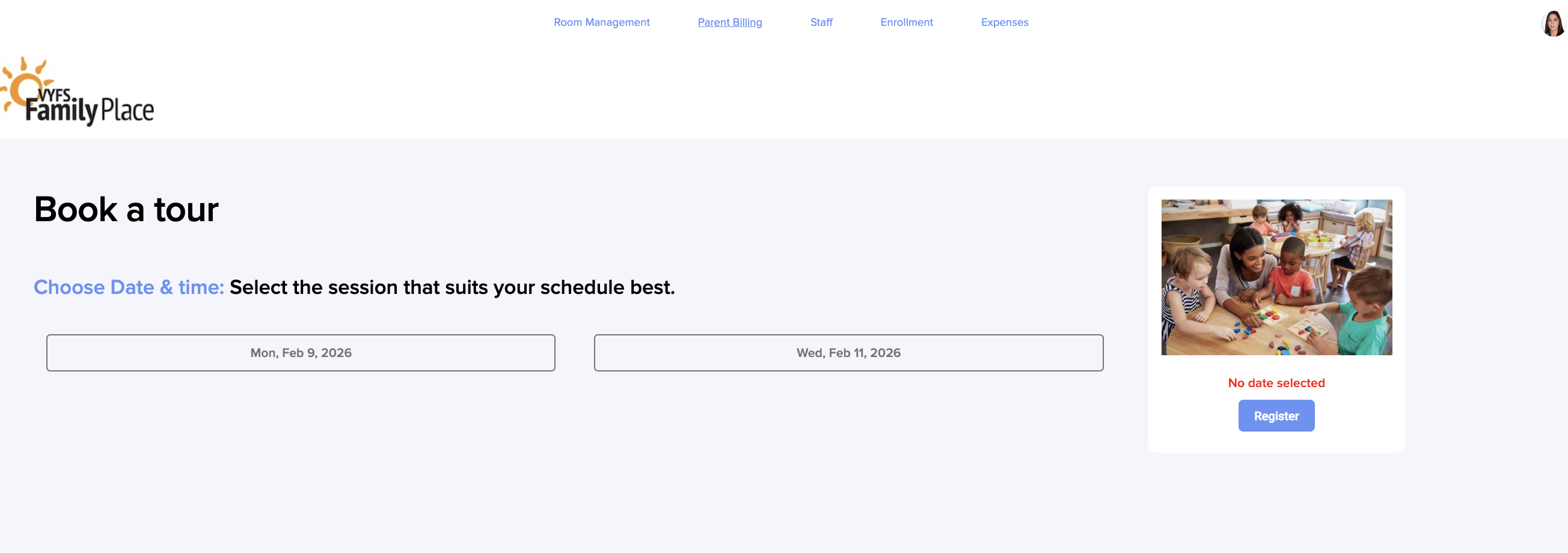 15. Parents select the option and click Register, and they are redirected to the form linked to the product.
