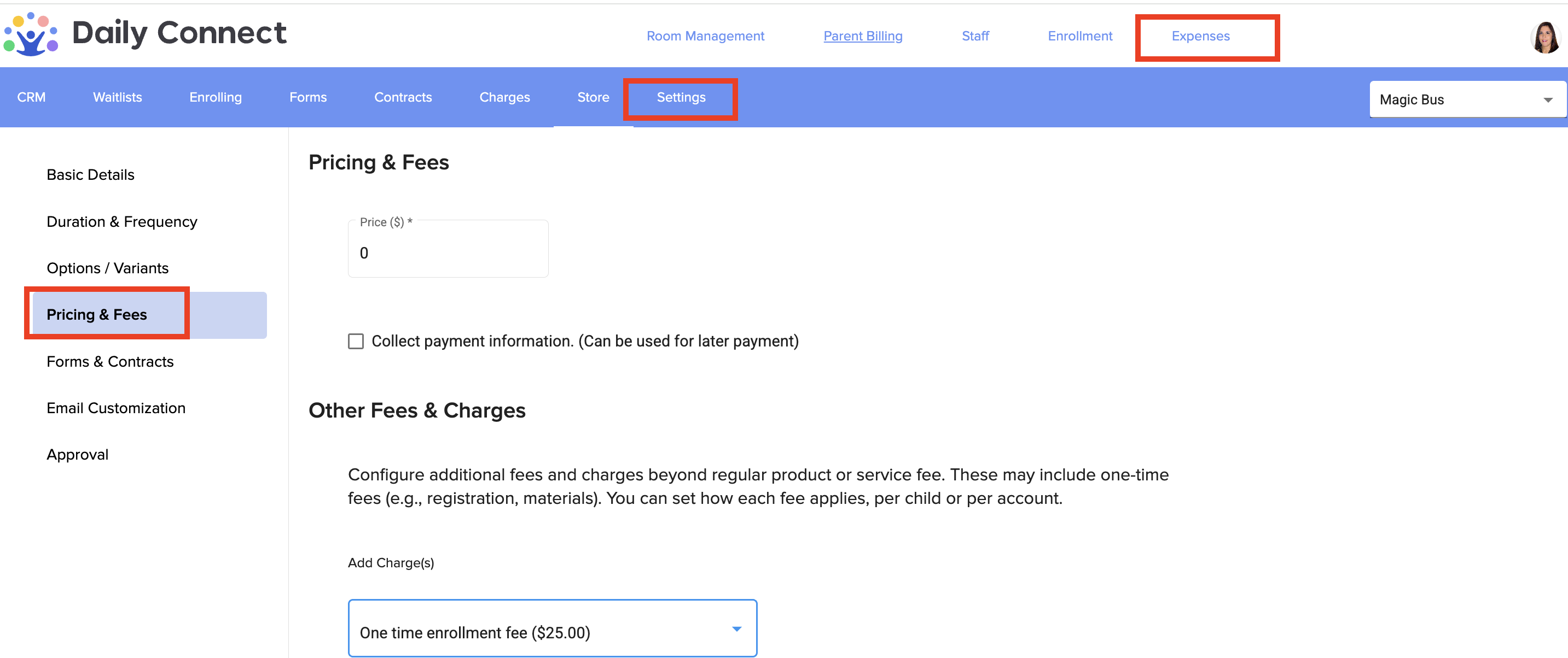 You can now charge a one-time fee for store products, perfect for things like Summer Camp registration fees, special programs, activity fees, or one-time supplies. You have the option to set the fee per child, or per family account.