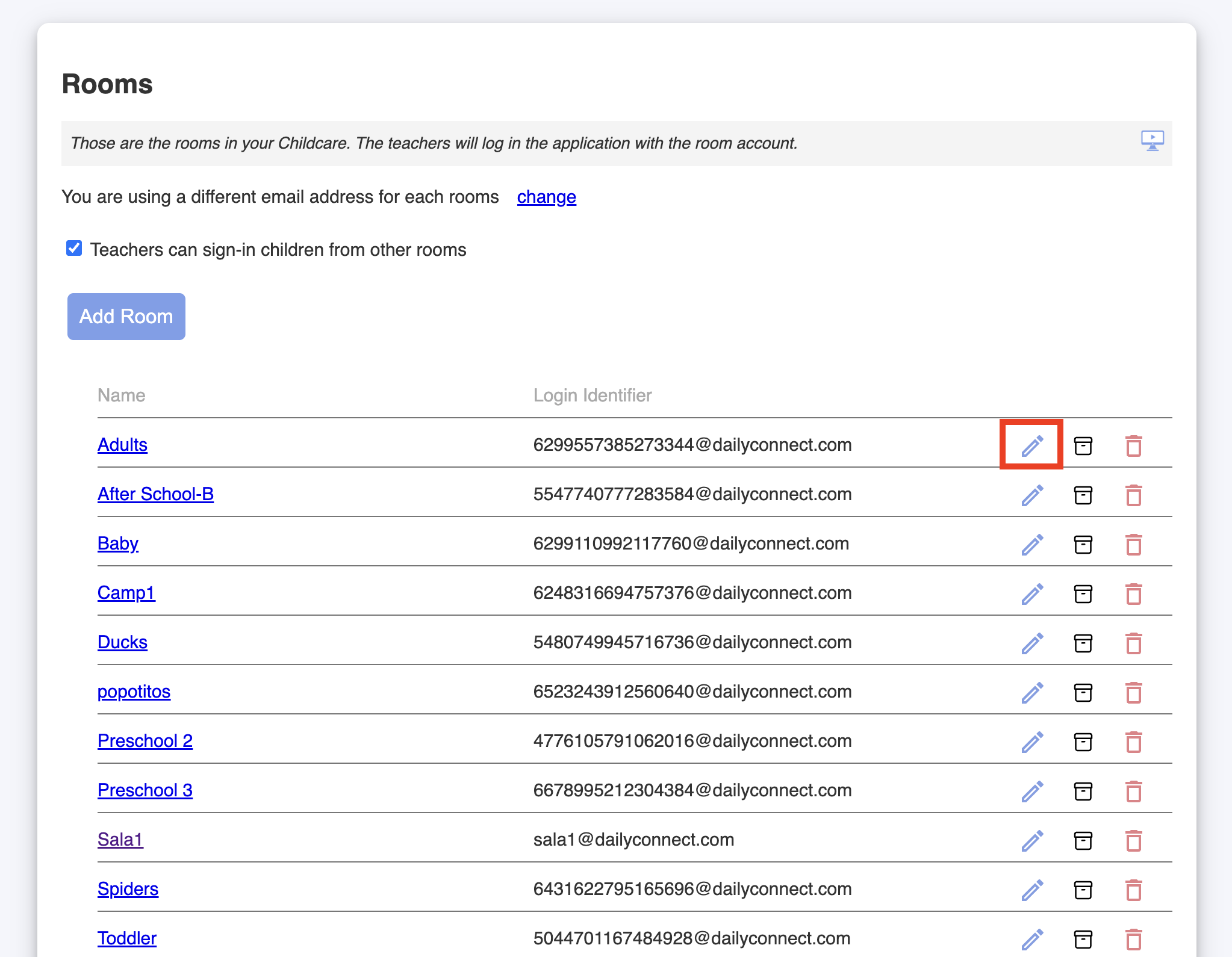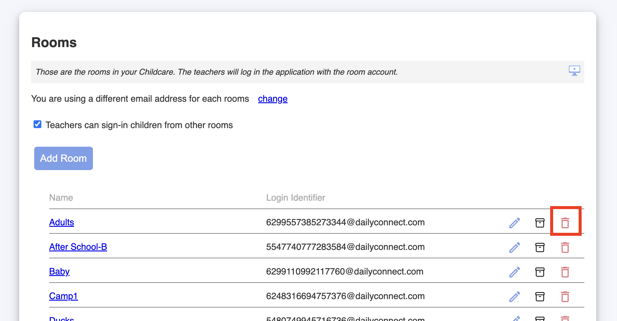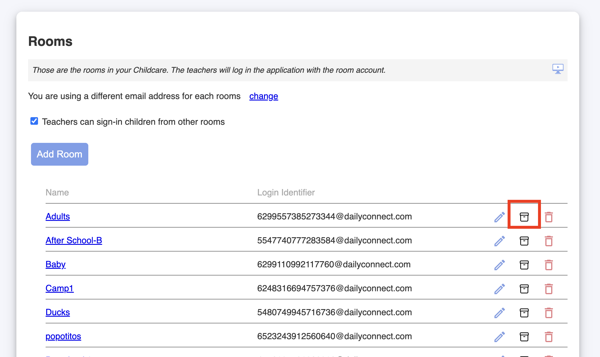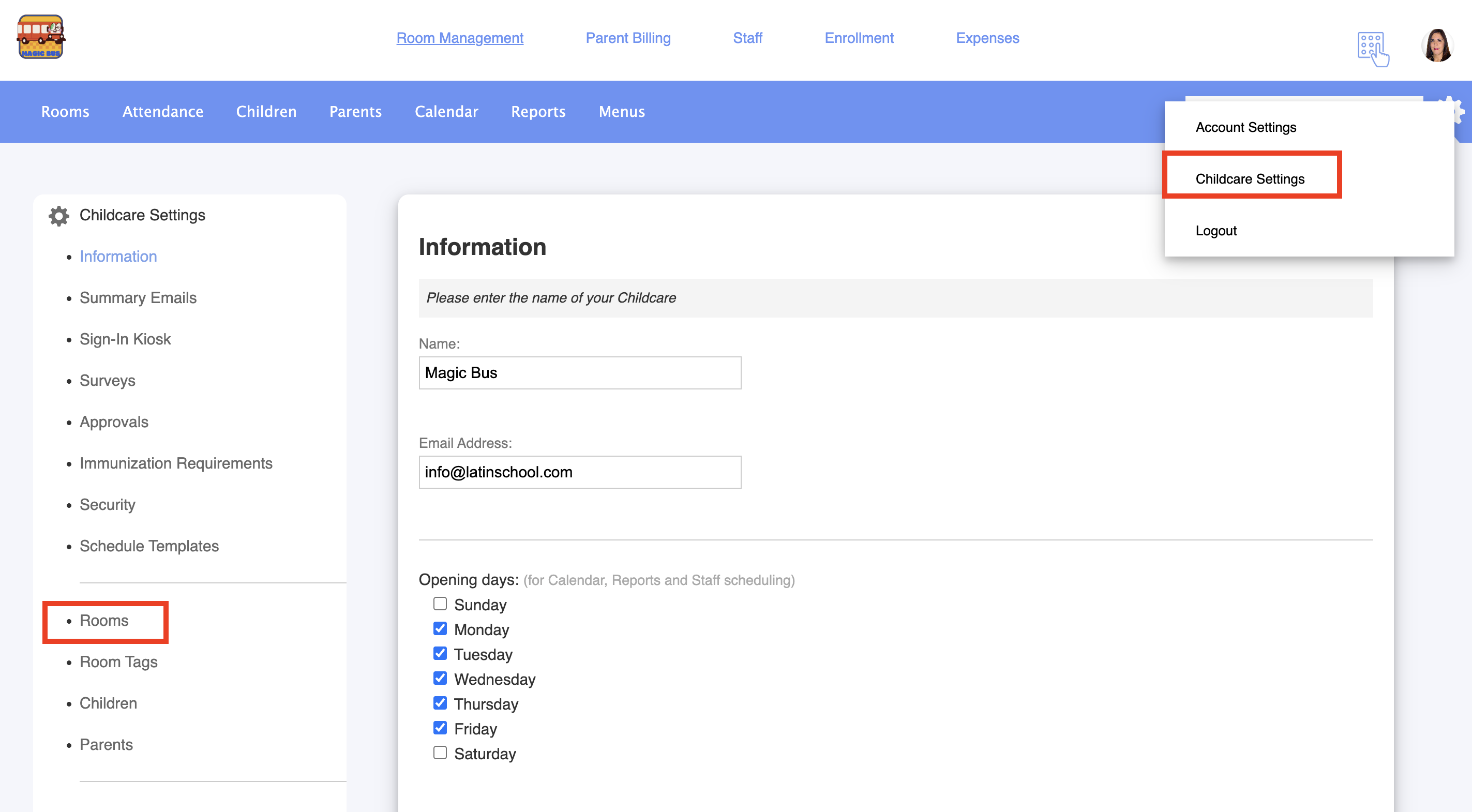 2. Got to Childcare settings > Rooms: