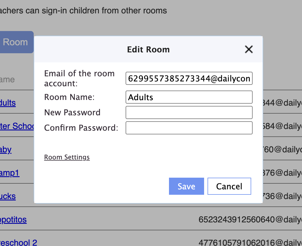 2. You can change the room name, email, and password: