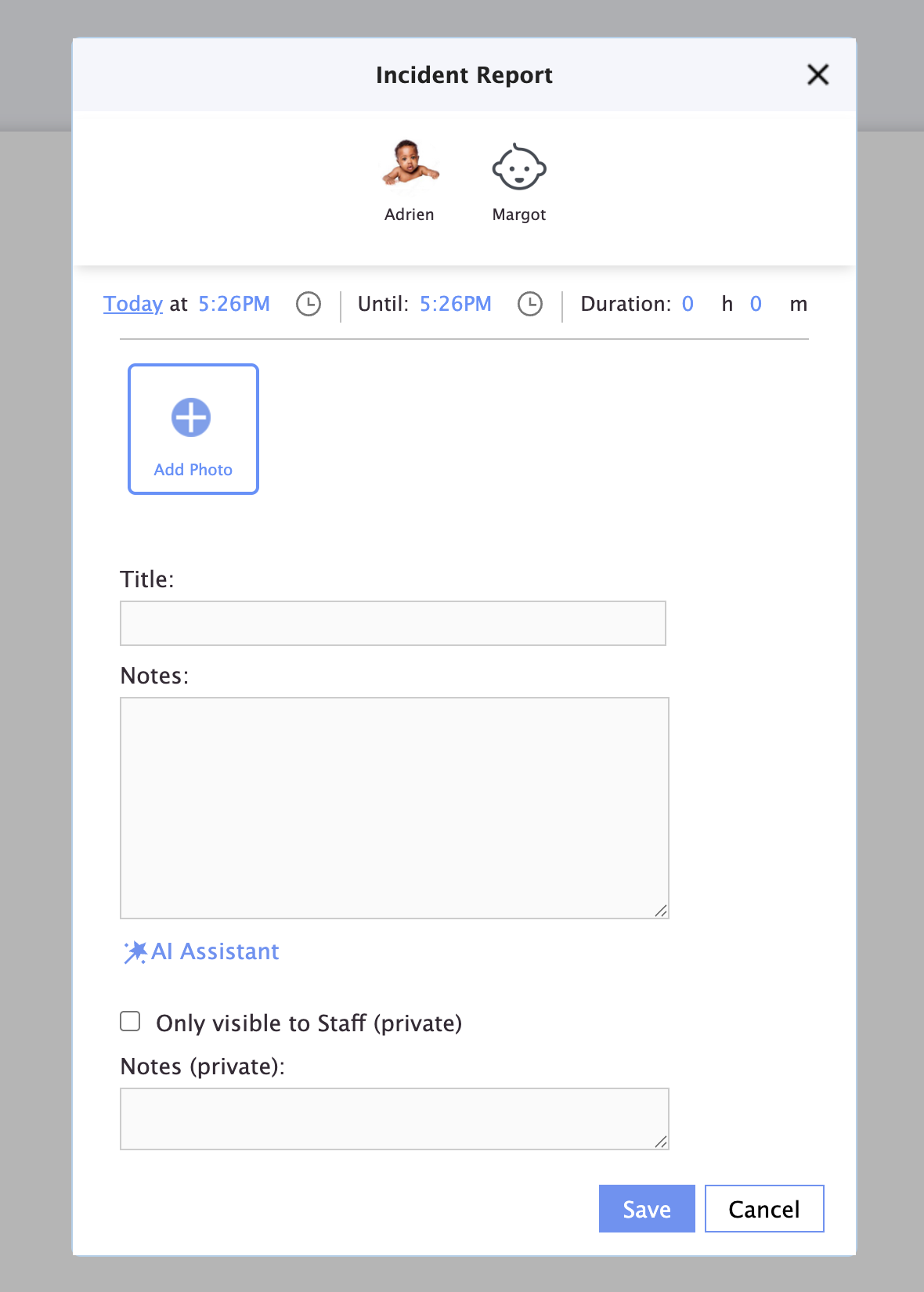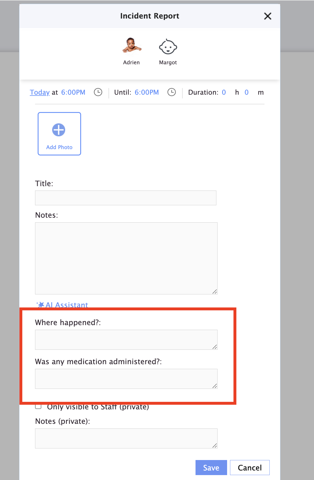 From our platform, you can inform parents that their child has had an incident at the center. In some cases, centers may need to include additional questions beyond what happened. Learn how to do this in this article.