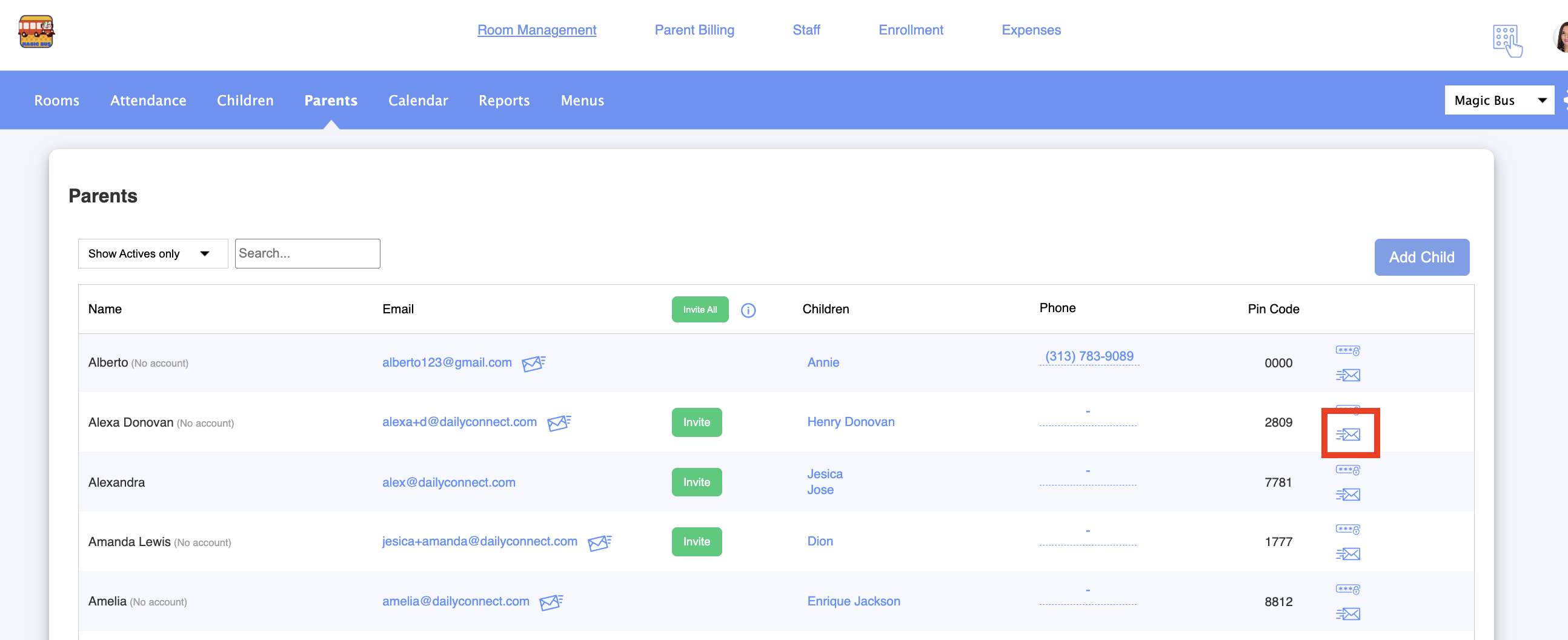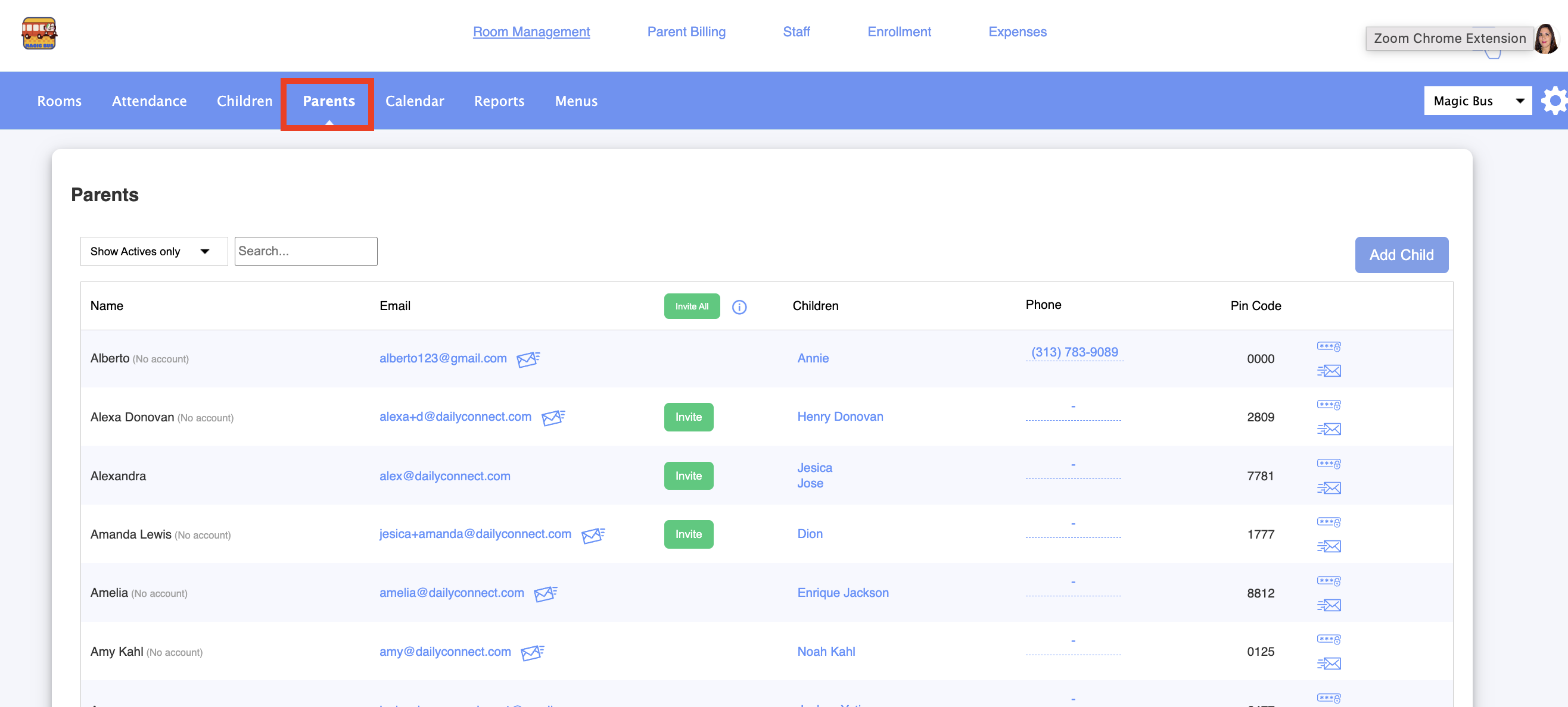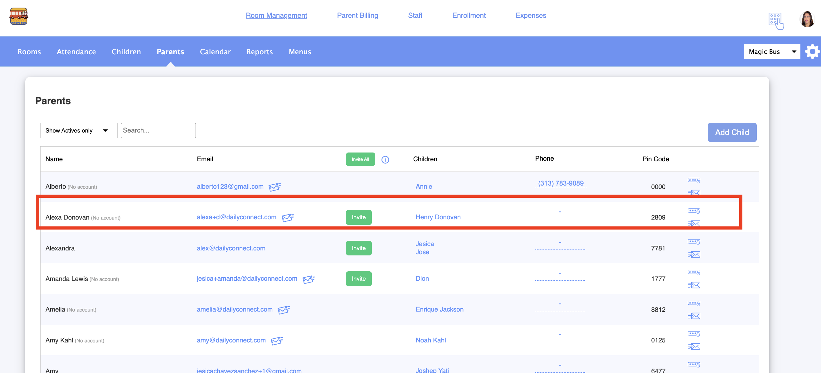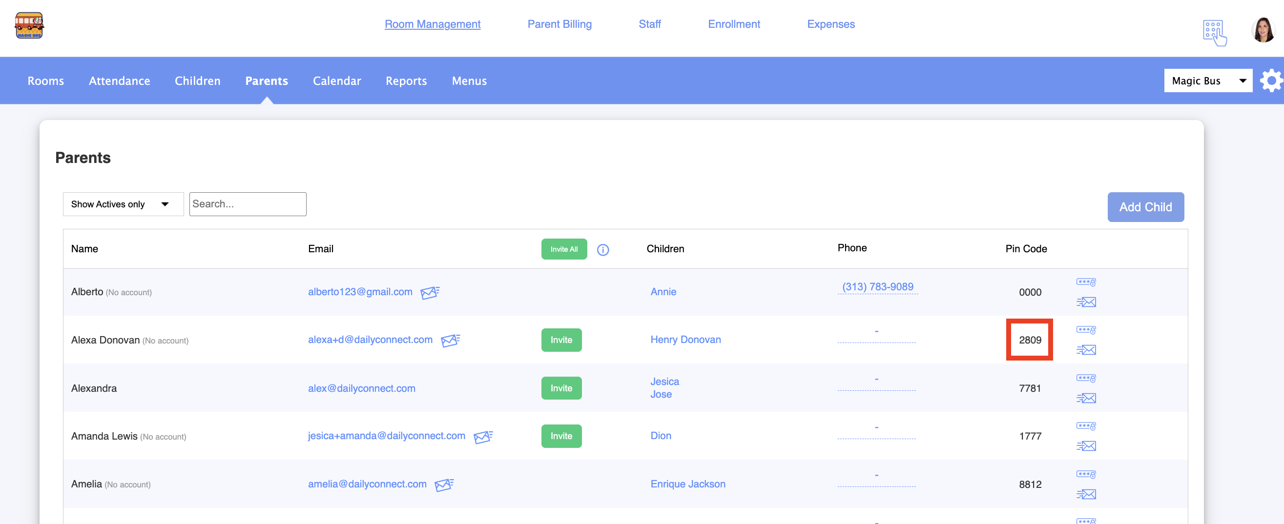 3. Here you can see this parent’s PIN code: