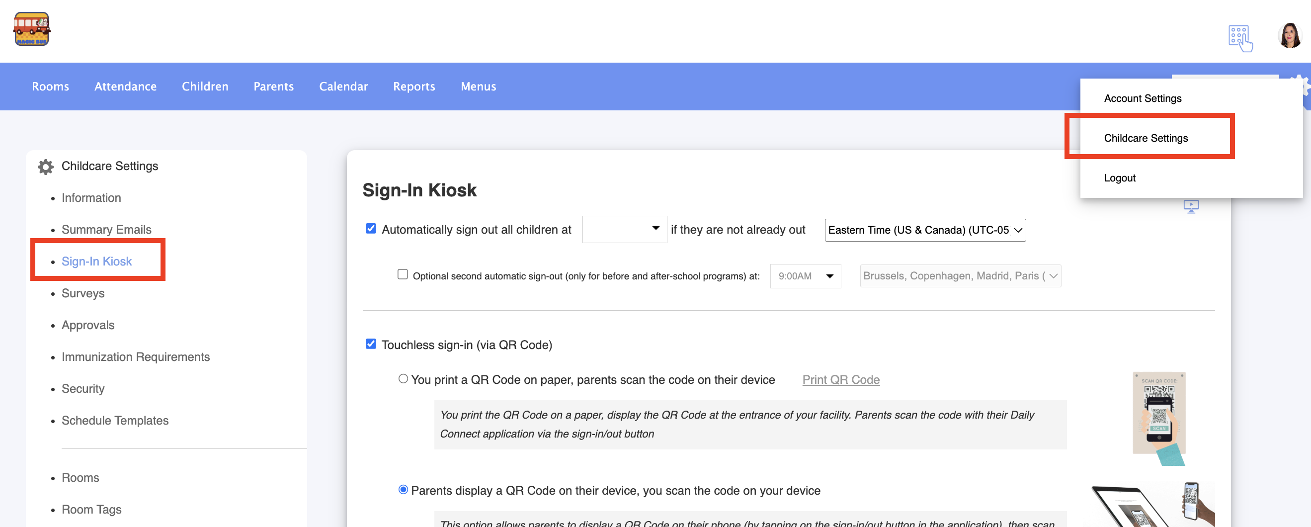 1. Go to Childcare Settings > Sign in Kiosk: