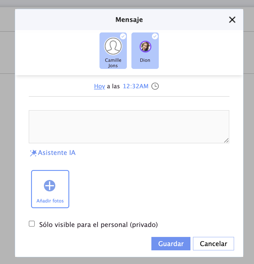 2. Escribe el mensaje que deseas publicar en la línea de tiempo de todos los niños en las salas seleccionadas.