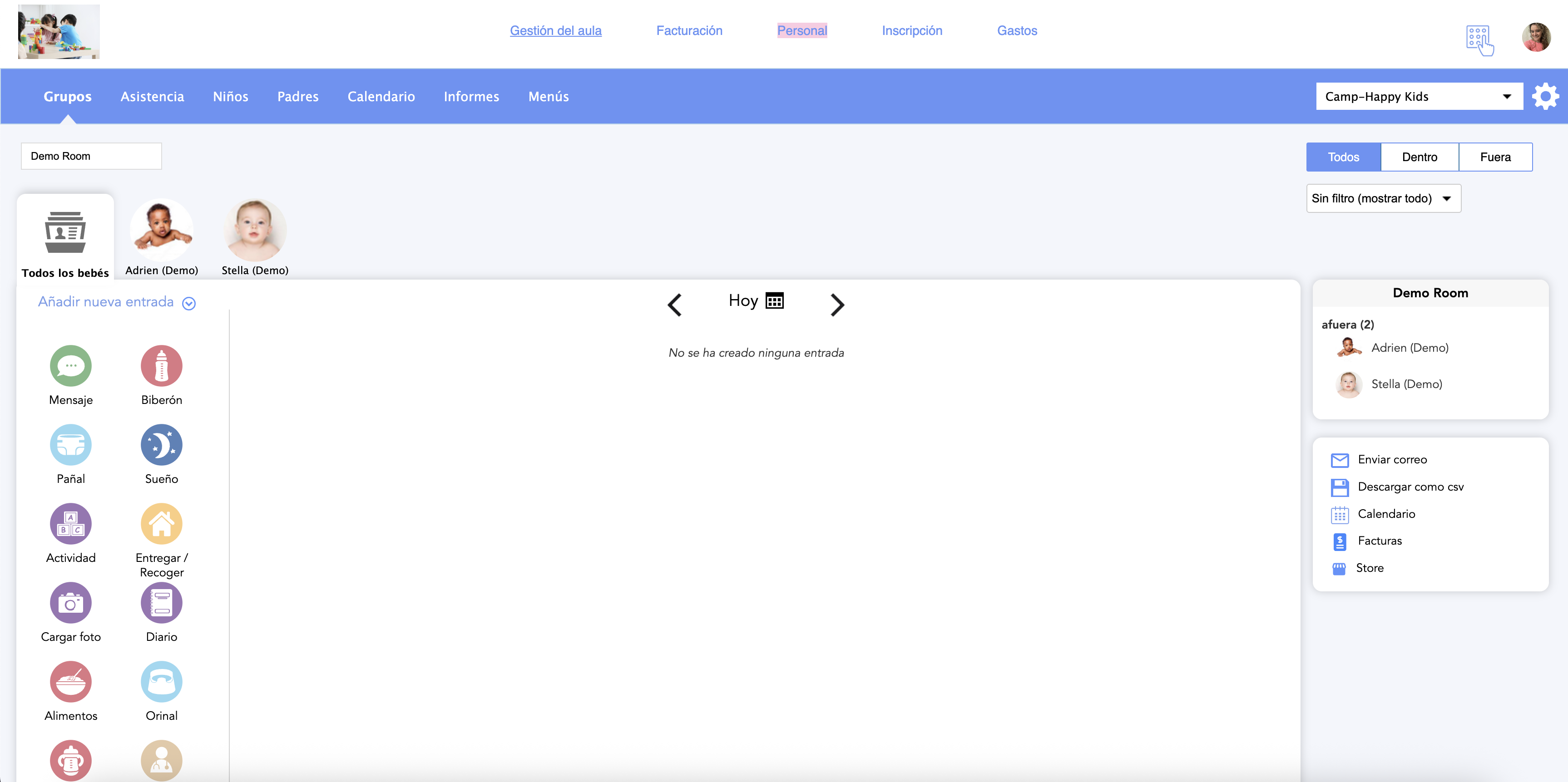 Administrador del Centro de Cuidado (director): puede cambiar la configuración del centro, agregar aulas, docentes y niños, y tiene acceso a todas las salas e información de los niños.