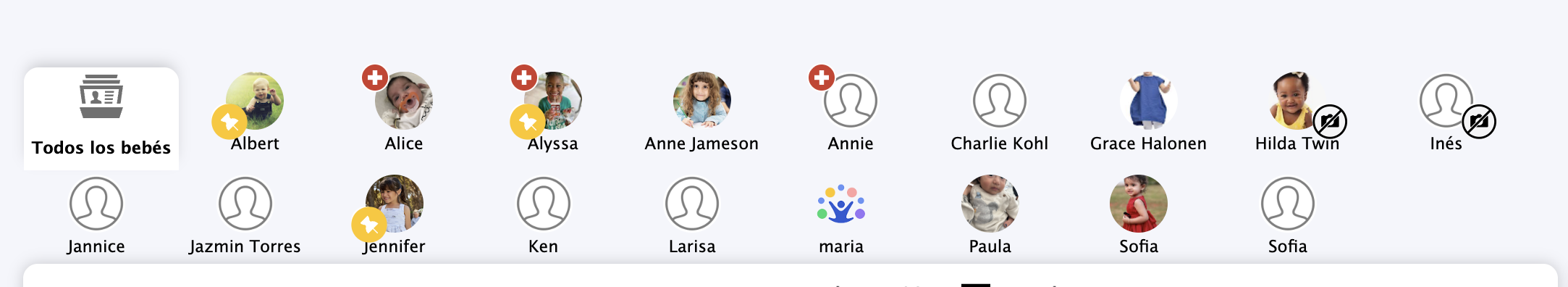 2. Para registrar un evento, seleccione al niño para el que desea crear una entrada o elija Todos los bebés para crear una entrada masiva para todos los niños.
