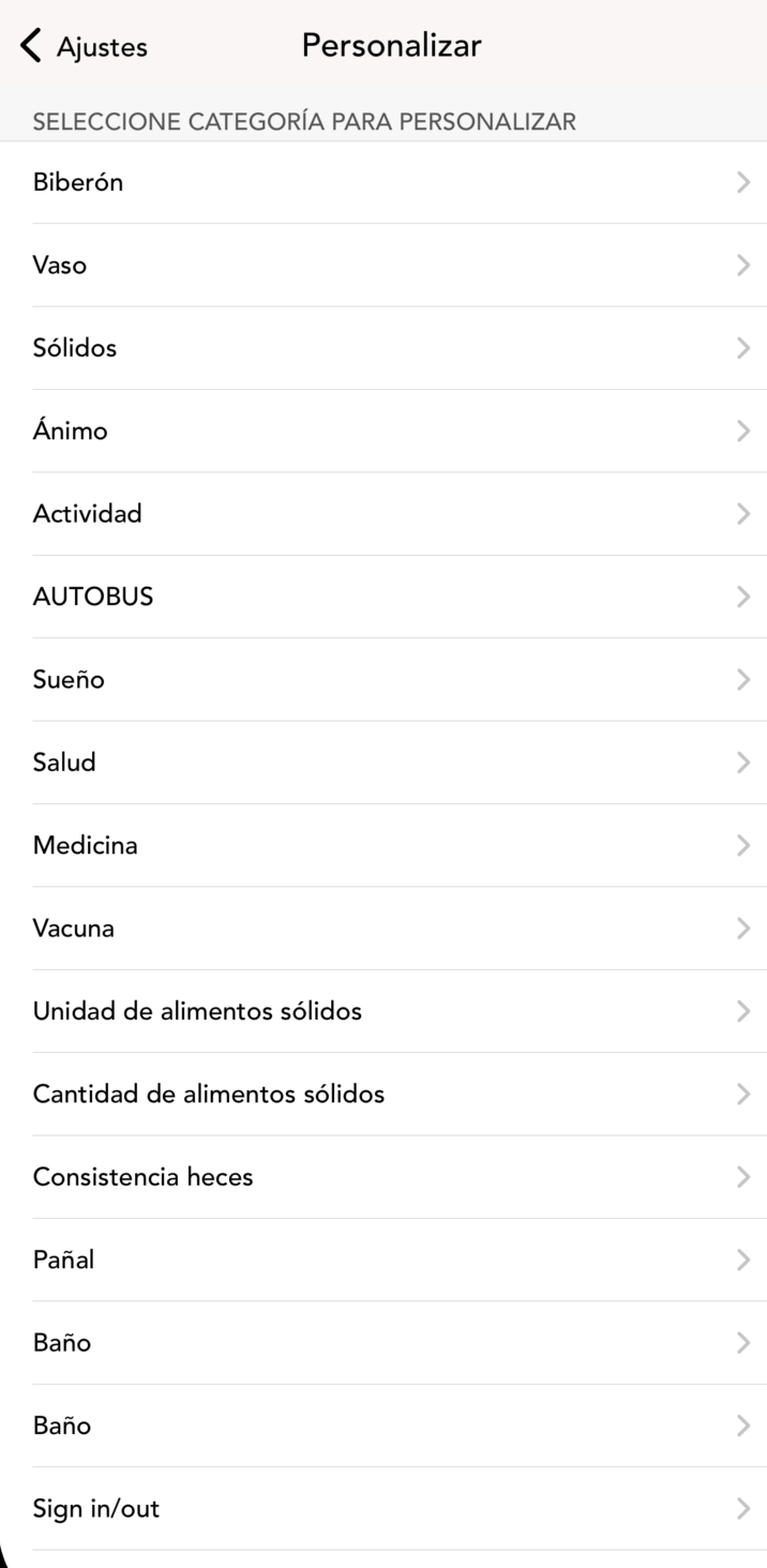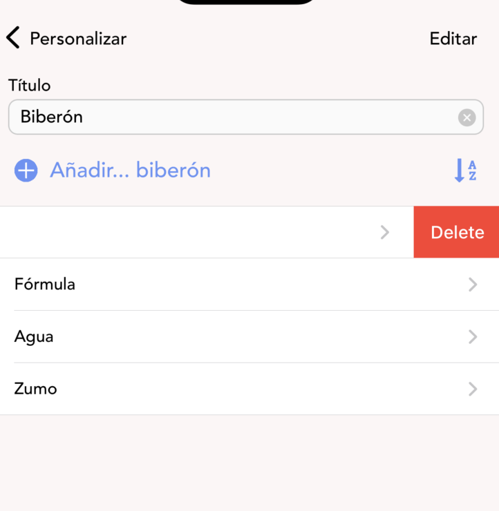6. Para eliminar una categoría haga clic encima y deslice con el dedo hacia la izquierda, haga clic después en el botón rojo: