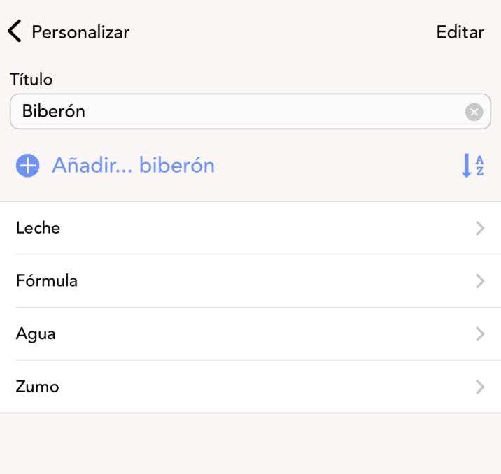 5. Haga clic en AZ para ordenar alfabéticamente todas las diferentes entradas de la categoría.
