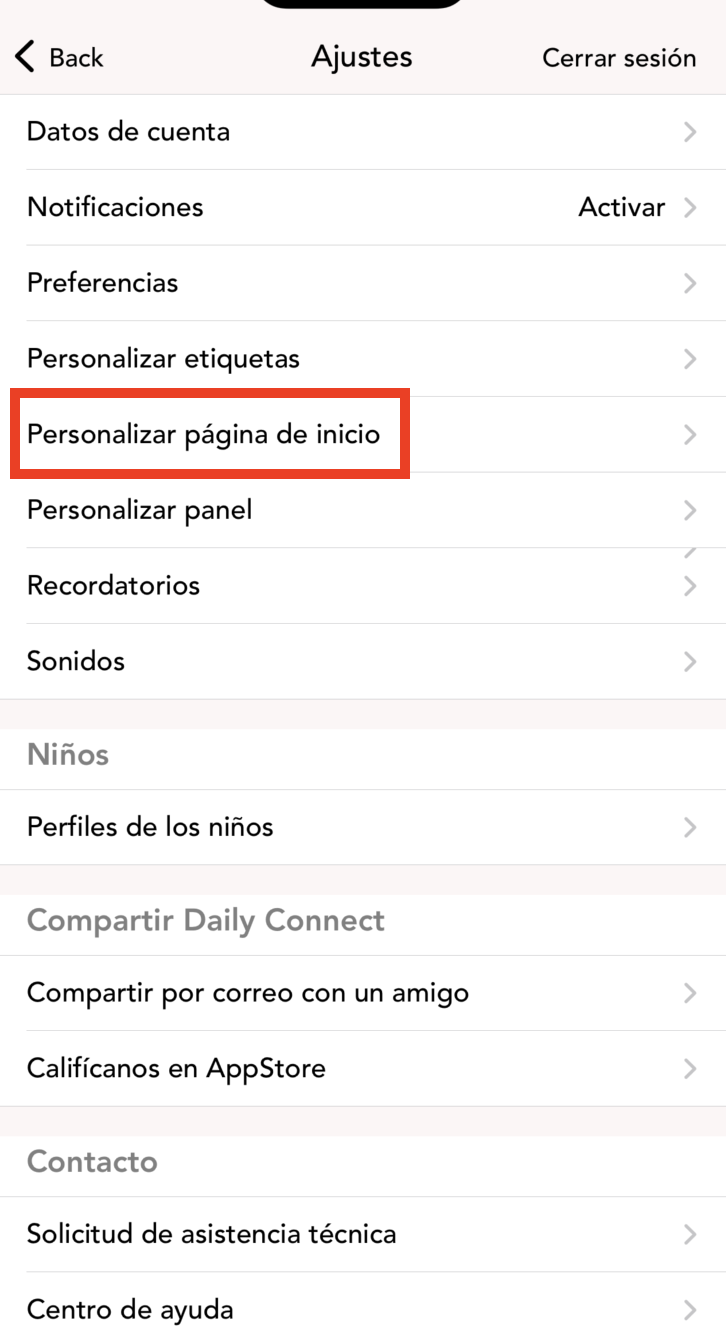 Siga estos pasos para personalizar la página de inicio desde la aplicación móvil: