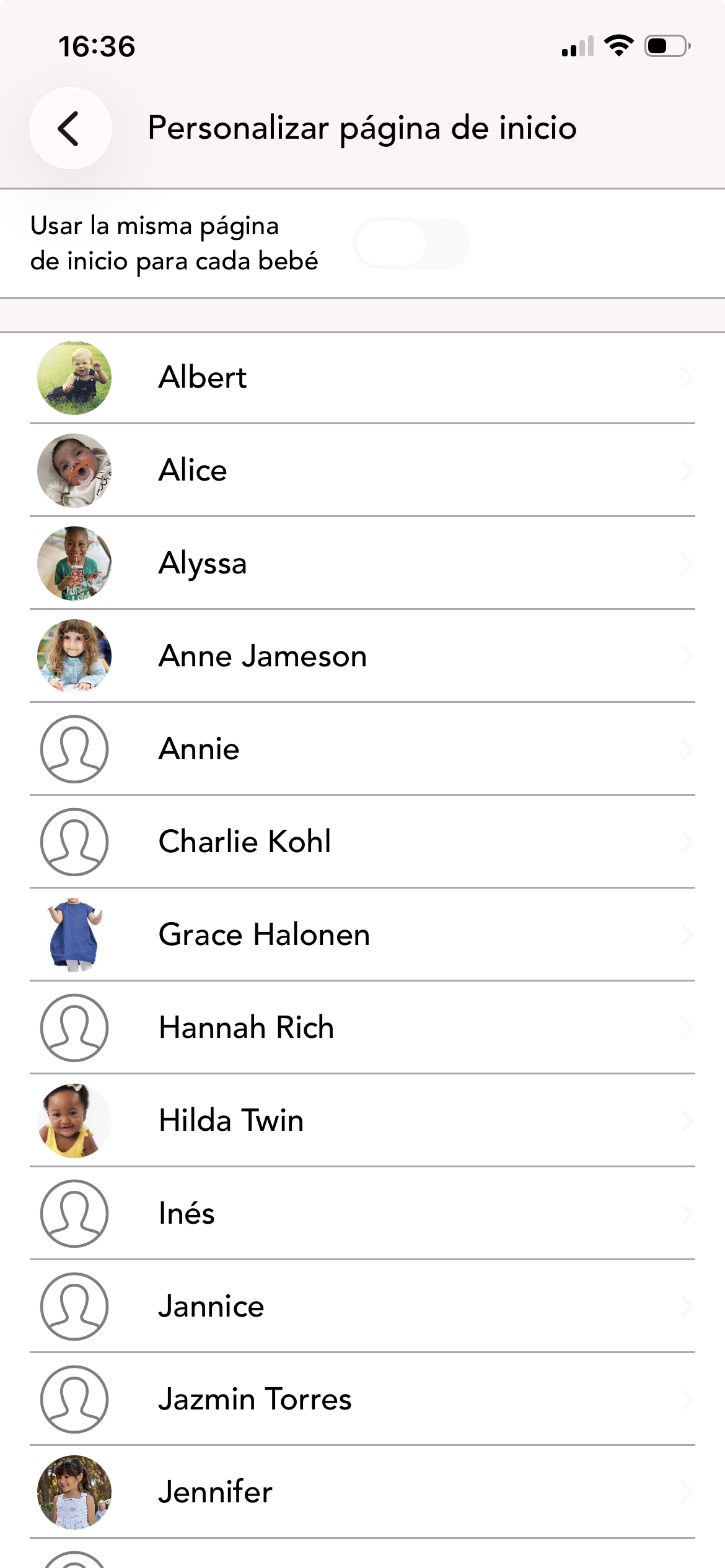 2. Seleccione al niño cuya página de inicio desea personalizar.