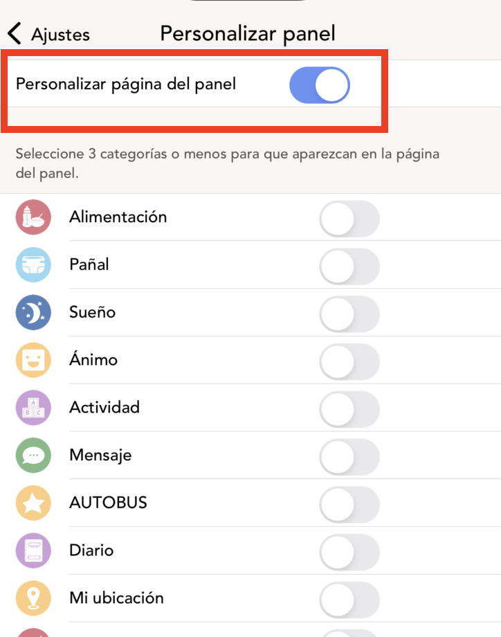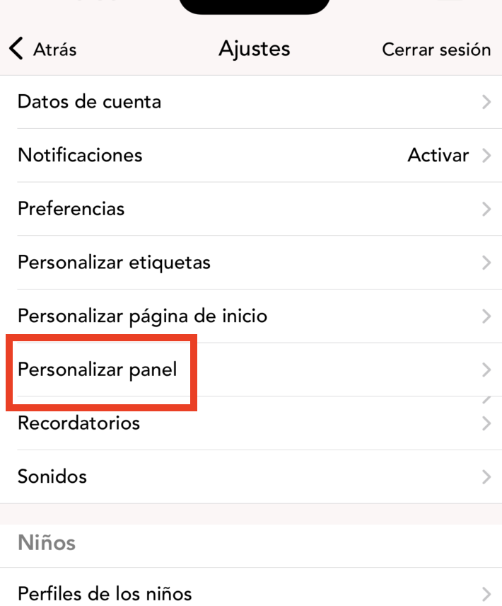 1. Vaya a Menú > Ajustes > Personalizar panel: