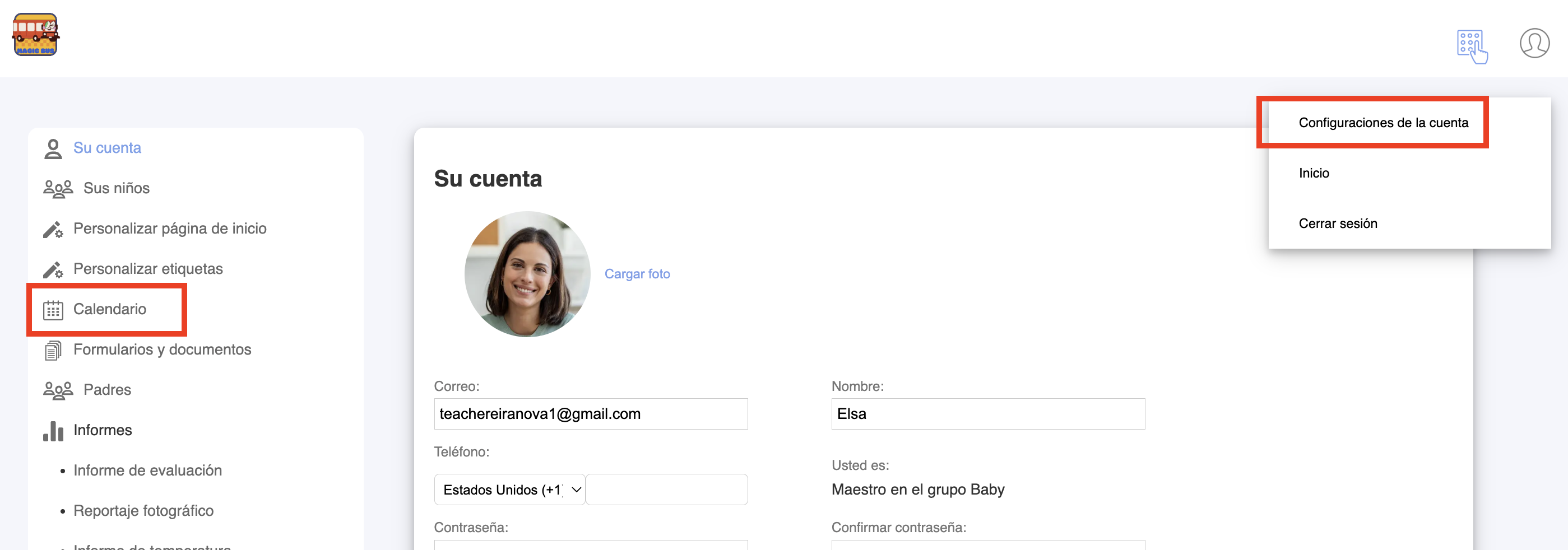 Los elementos del calendario informan a los padres sobre próximos eventos, menús de comida o lecciones.