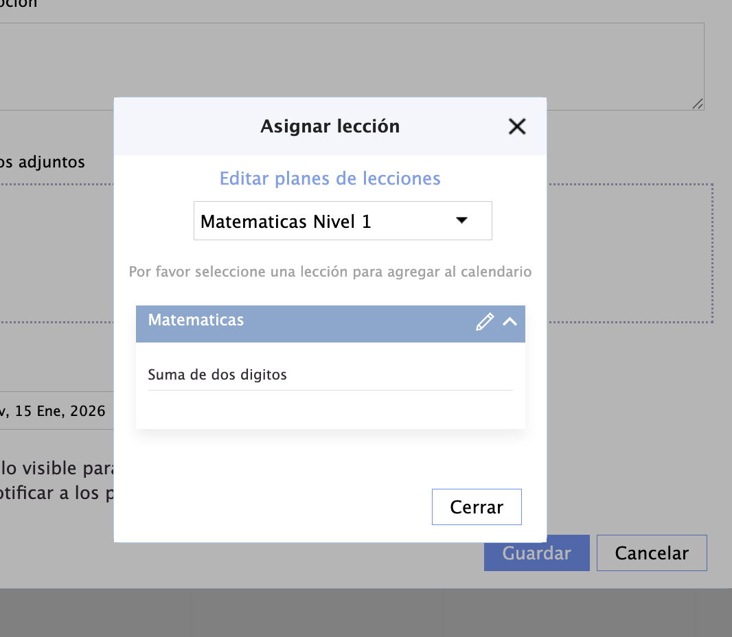 Crear una lección le permite indicar y describir las diferentes clases que imparte a los niños en fechas específicas.