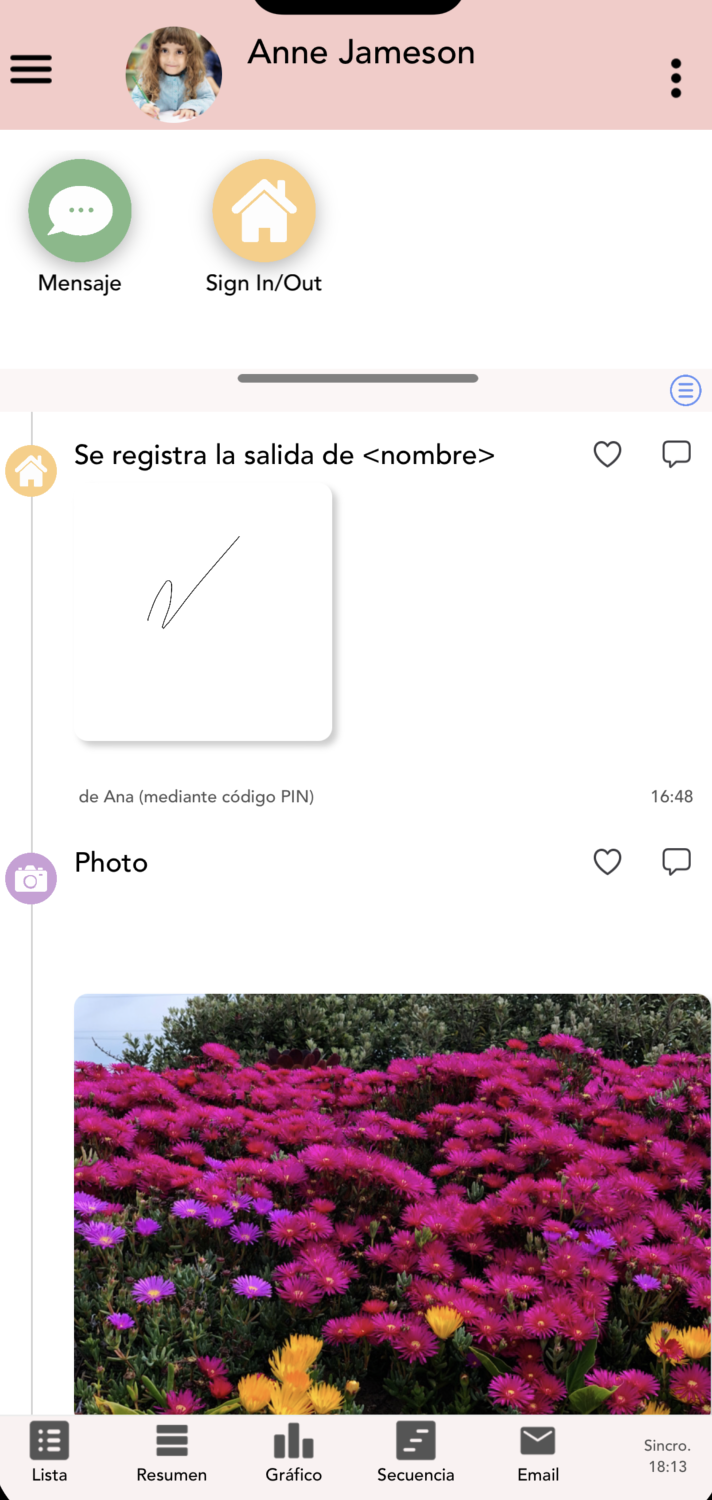 Como padre/madre, puede hacer seguimiento de cada parte del día de su hijo. Puede ver los distintos eventos que ocurren durante su jornada cuando los maestros los registran en forma de entradas.