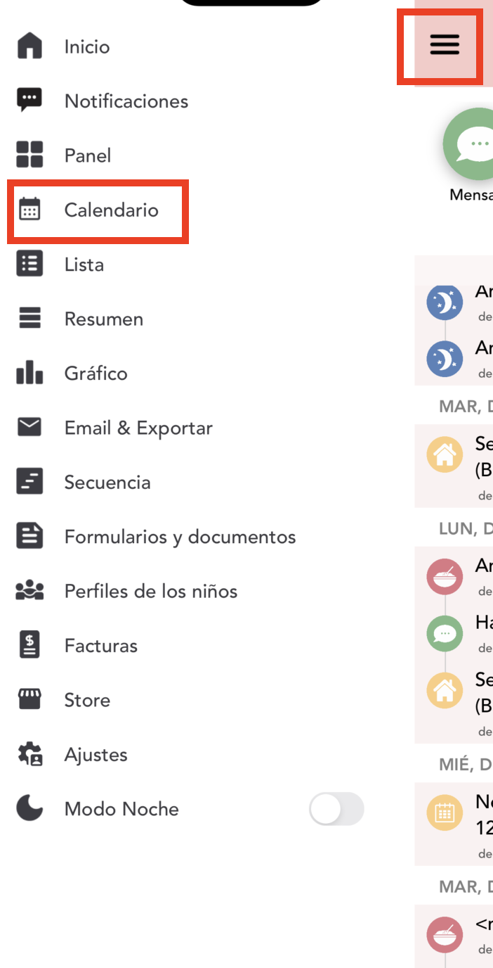 3. Para acceder al calendario vaya a Menú > Calendario: