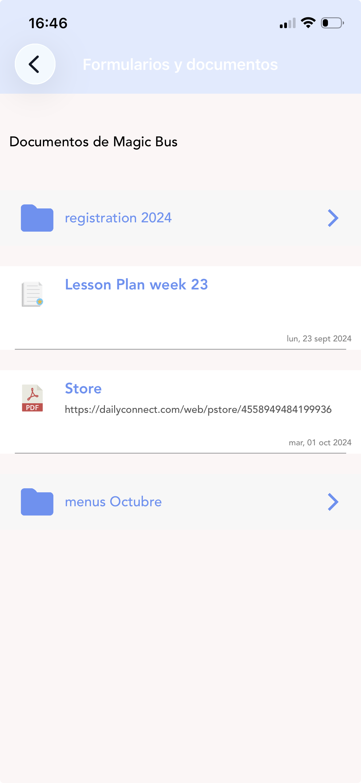 Esta función te permite, como administrador, subir formularios y documentos que estarán disponibles para que los padres los consulten en cualquier momento. Todos los padres podrán acceder a estos documentos desde la app web o la app en iPad.