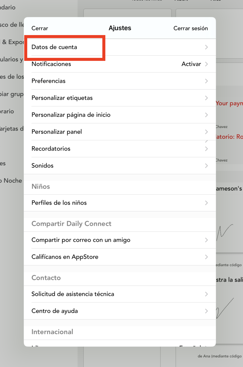 3. Vaya a Datos de cuenta: