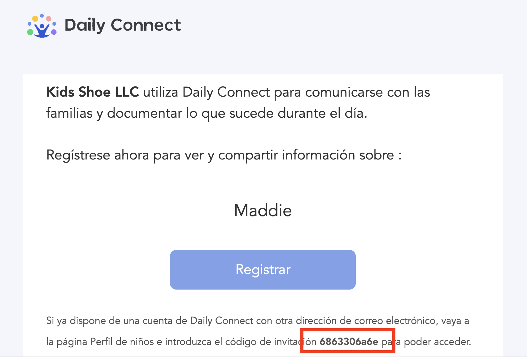 Una vez que su hijo esté registrado en un centro, recibirá un correo electrónico de invitación para crear su cuenta. Su cuenta quedará vinculada a la de su hijo para que pueda recibir y compartir información sobre él.