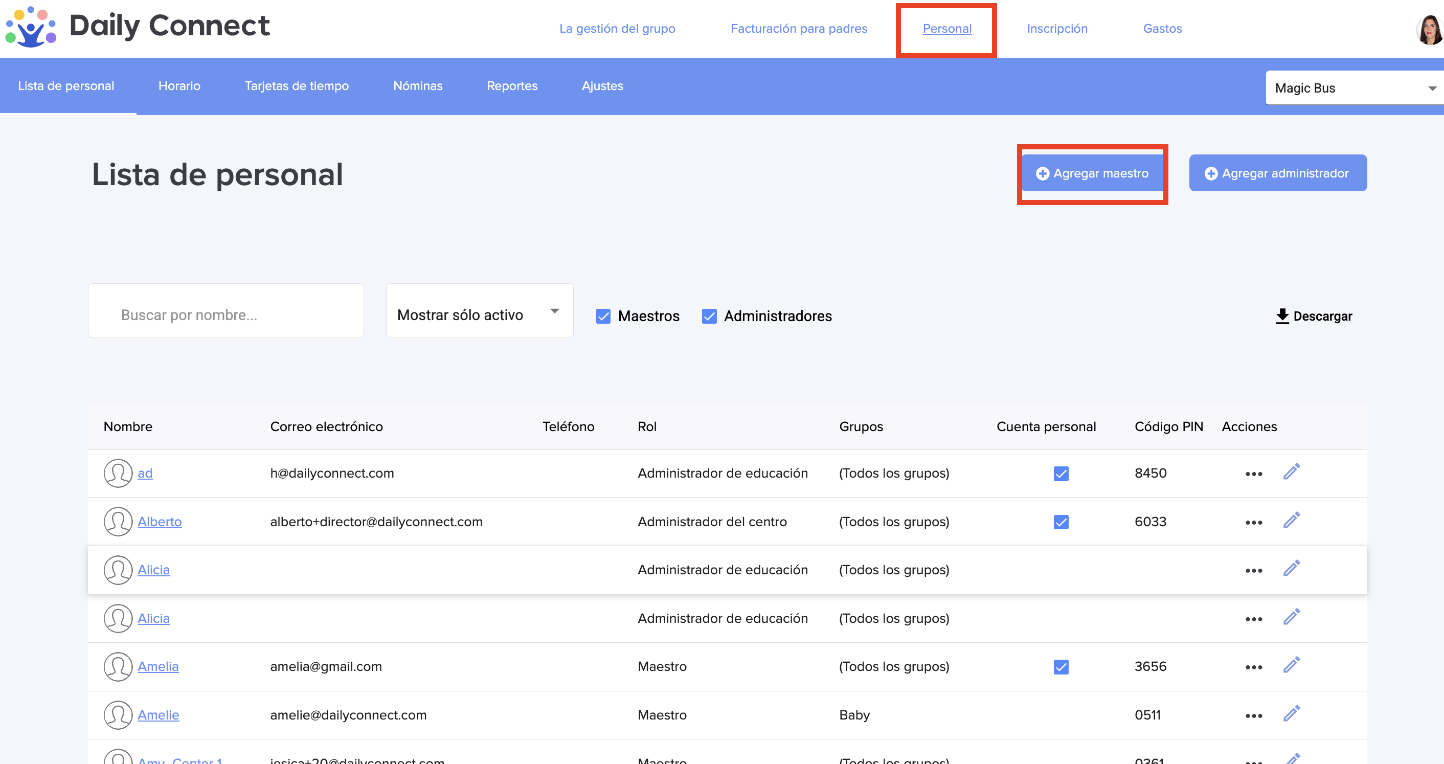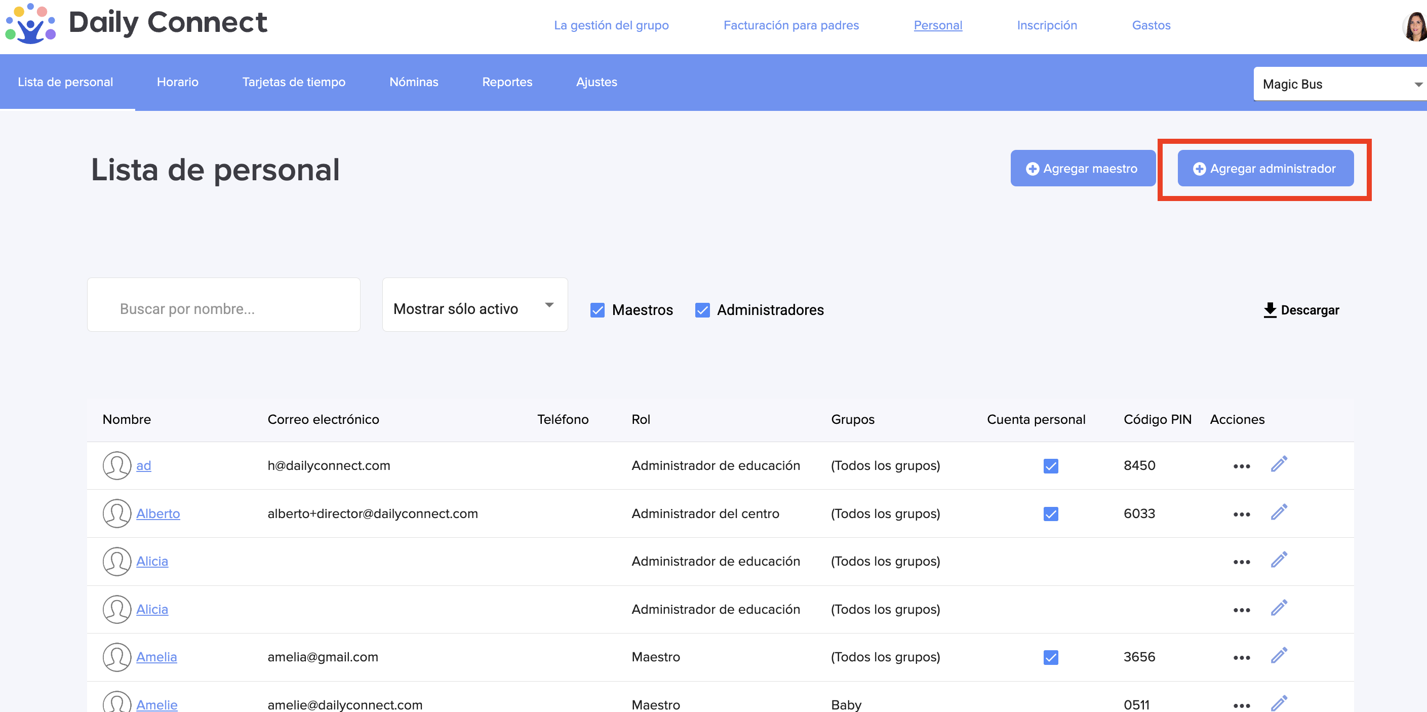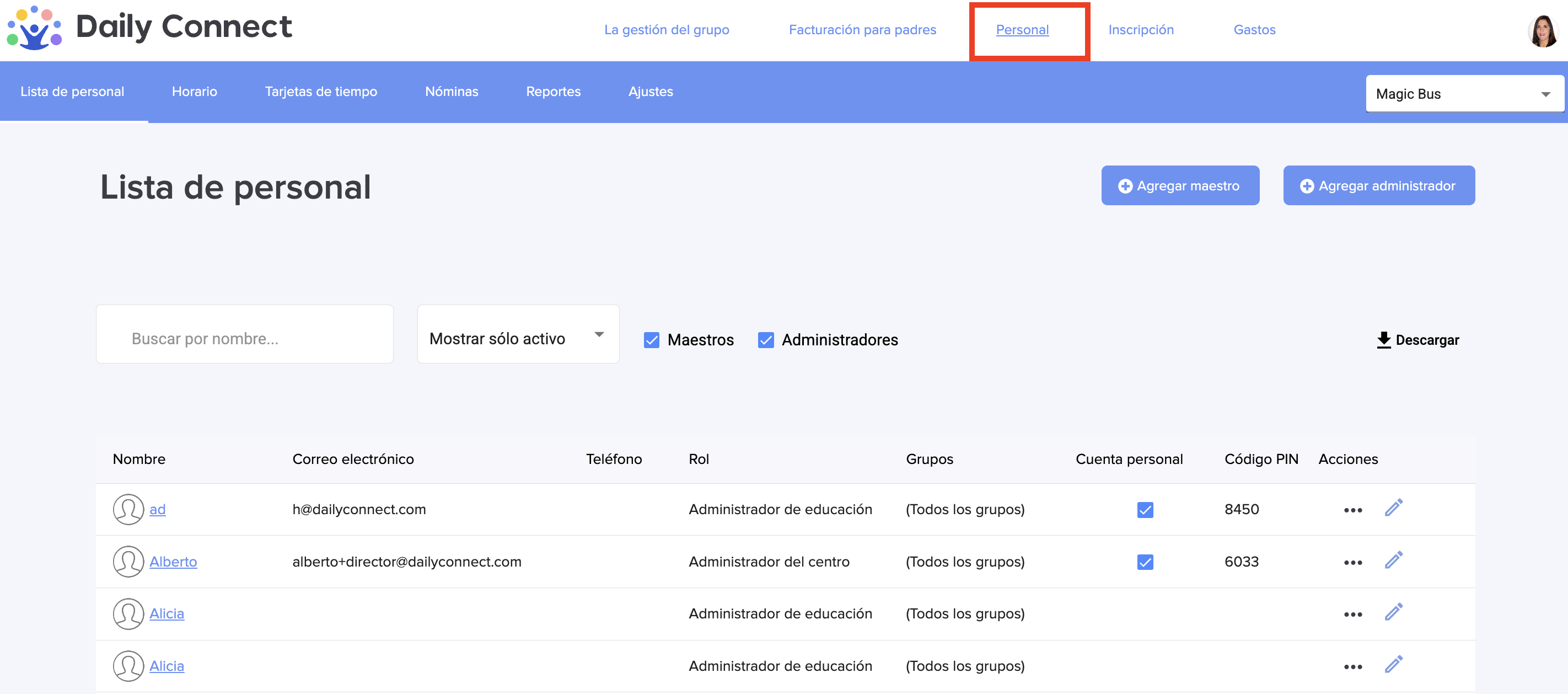 Agregue nuevos perfiles de maestros y/o administradores a su cuenta de Daily Connect. Para ello siga estos pasos: