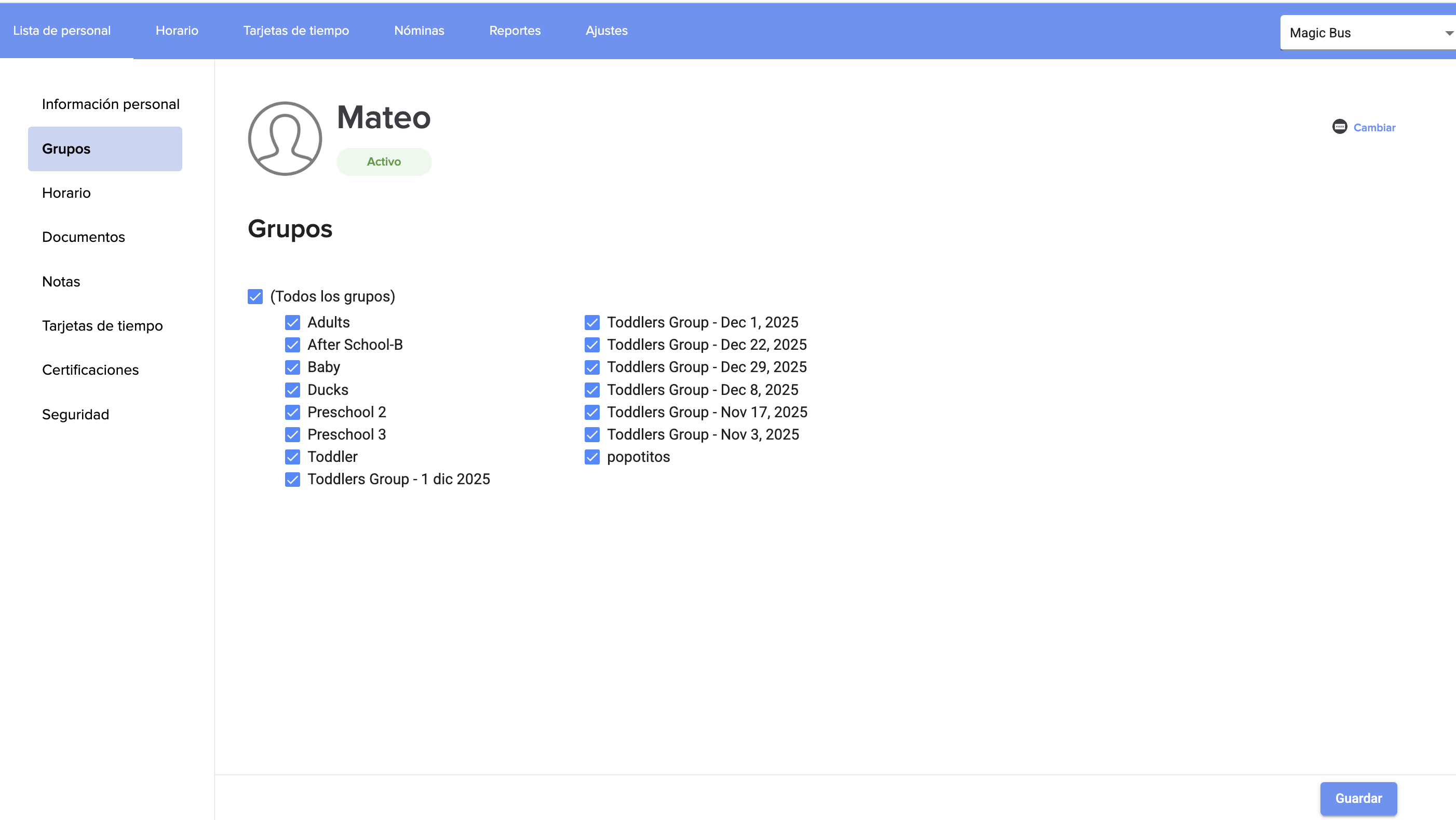 4. A continuación seleccione el grupo o grupos a los que va a estar ligado este nuevo maestro: