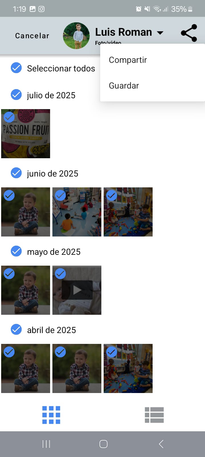 Si deseas descargar todas las fotos, busca la opción “Seleccionar todo” o utiliza el gesto de selección múltiple.