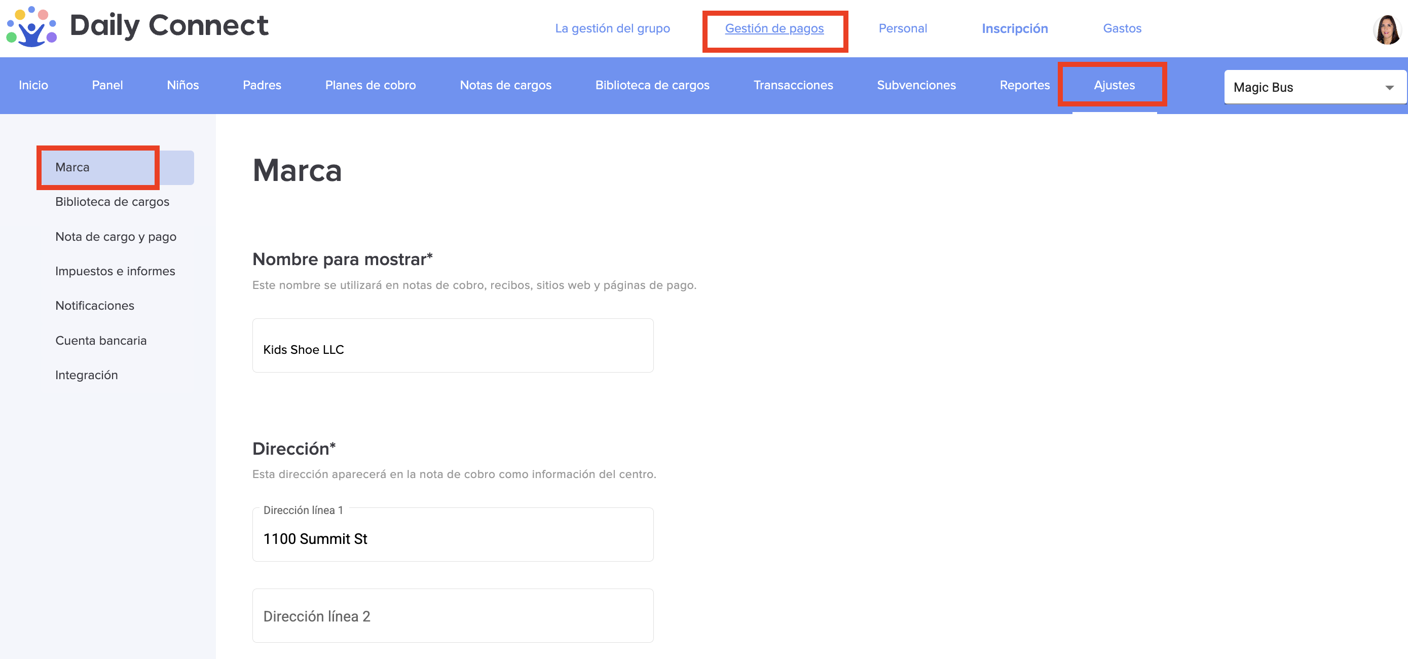 En la configuración de gestión de pagos , puede personalizar  su logotipo, ID fiscal y otras preferencias.