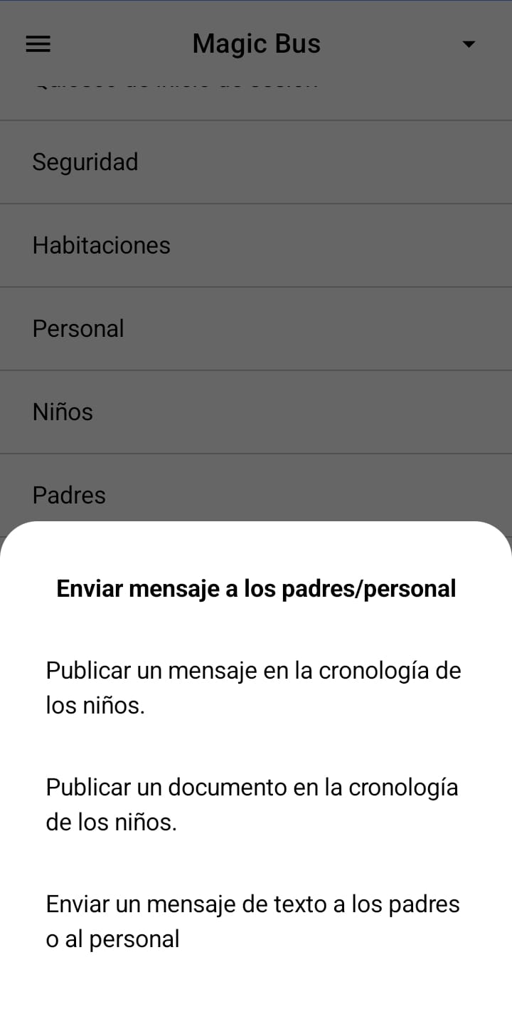 • Enviar mensaje a padres/personal: puedes tocar este icono para decidir si deseas publicar un mensaje en el timeline de un solo salón, de varios salones o de todos los salones.