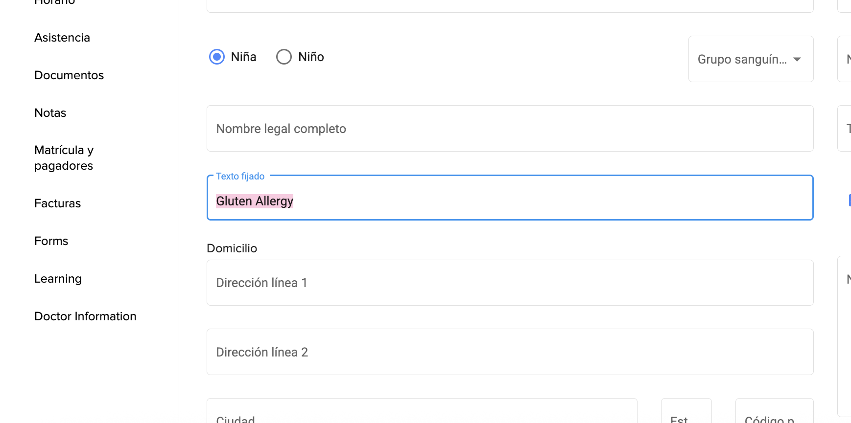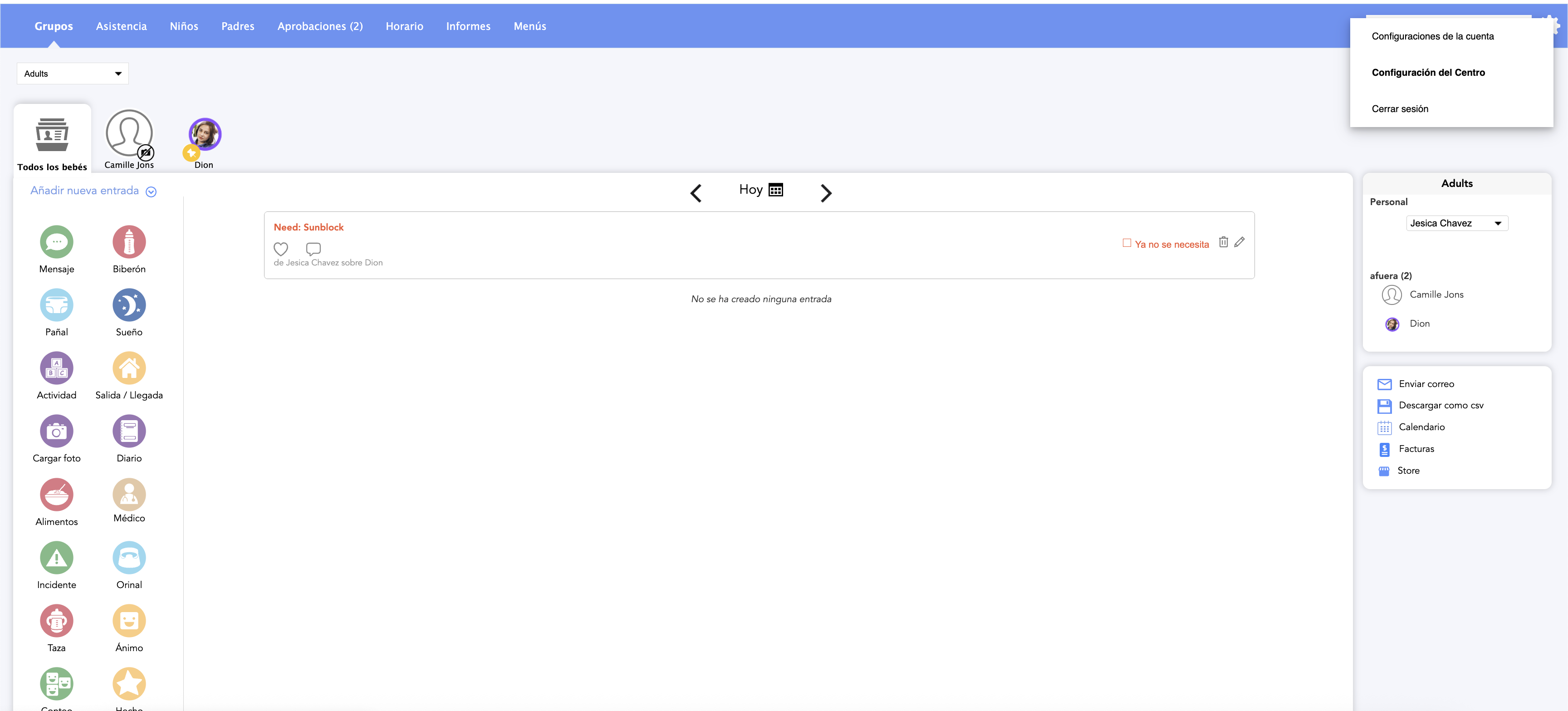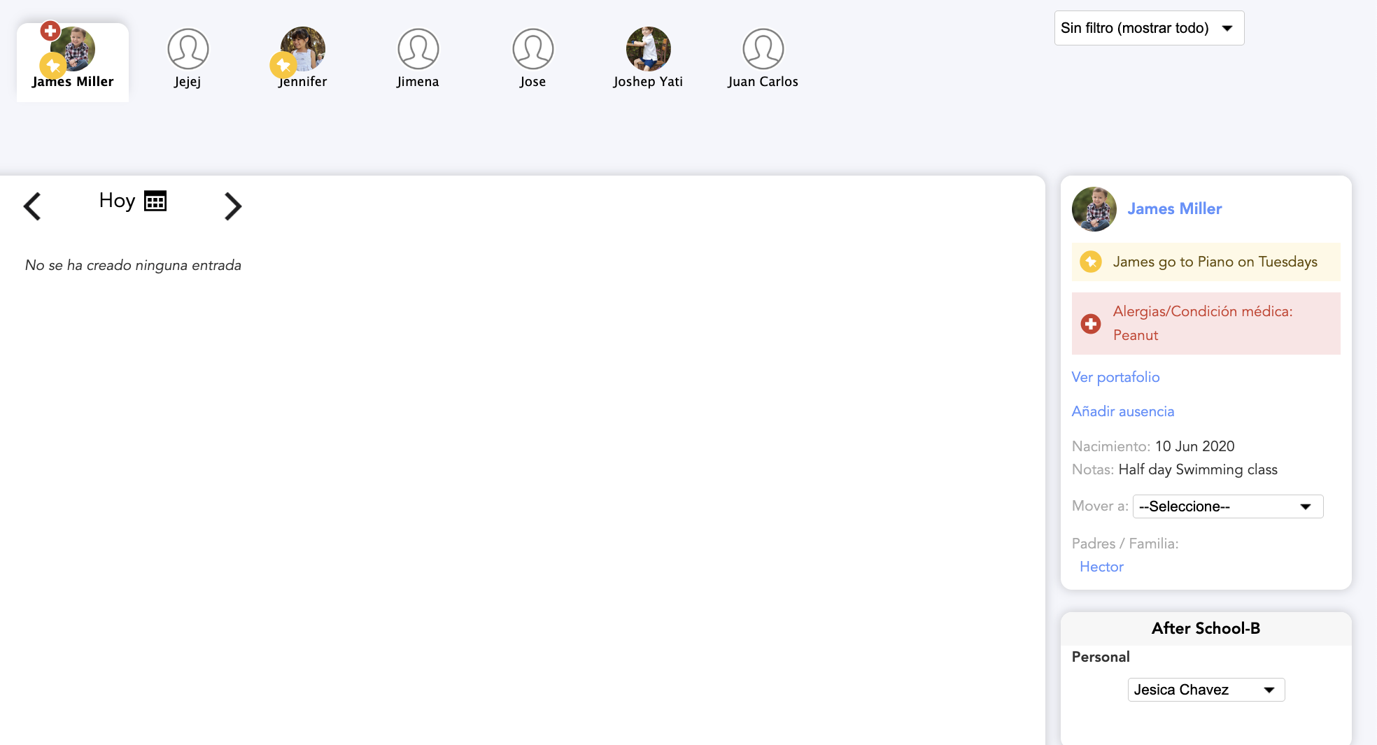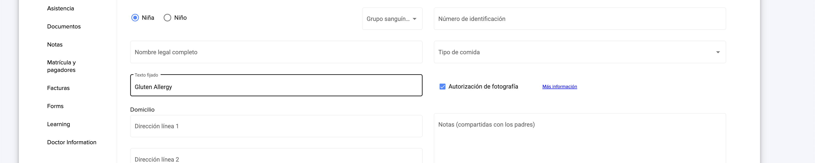 Este mensaje solo es visible para el personal de la guardería, no para los padres. Puede usarse para notas importantes, información médica relevante o instrucciones de salida