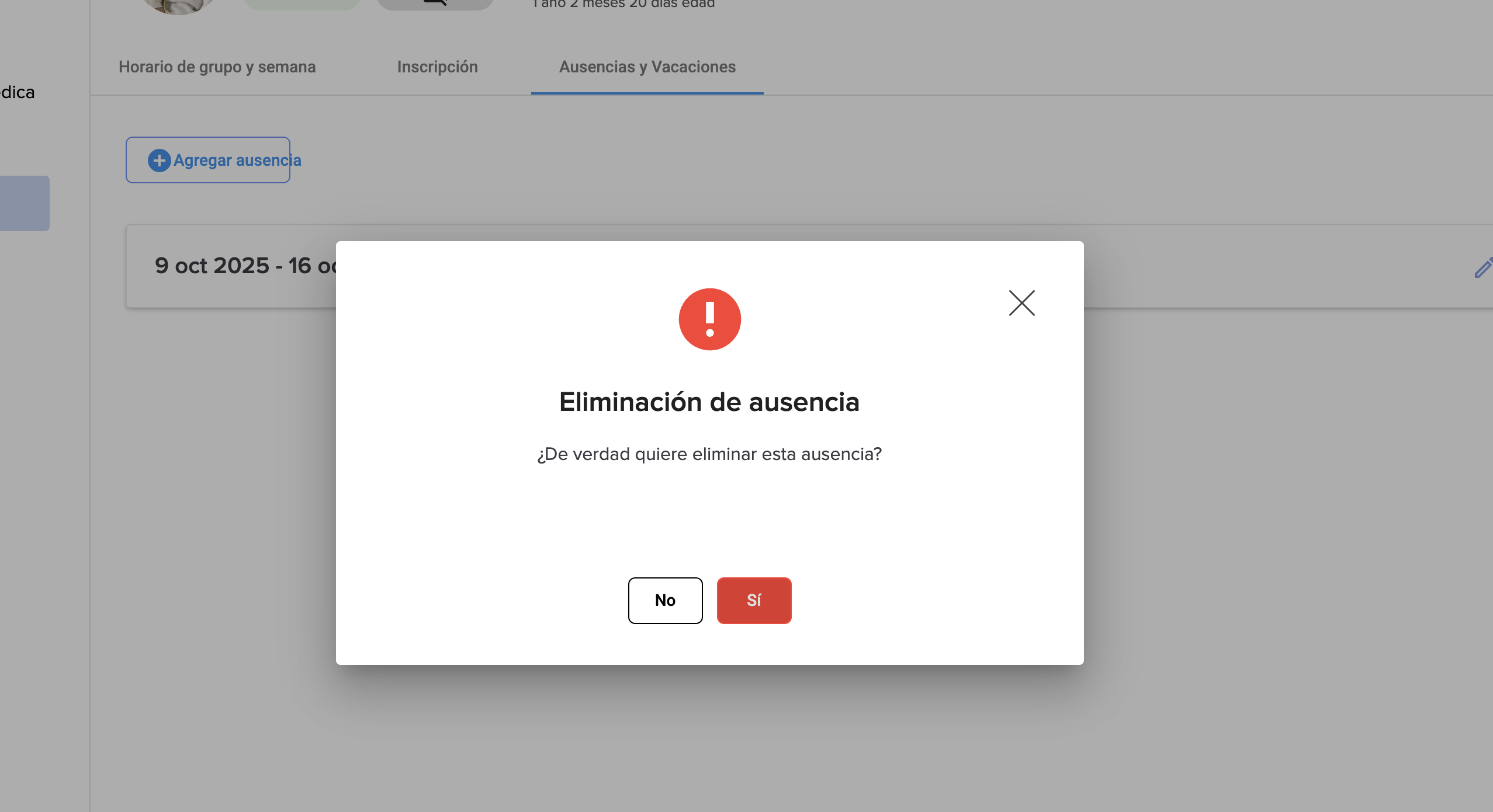 5. Dirígete a la sección “Ausencias y Vacaciones” y elimina la ausencia que deseas borrar.