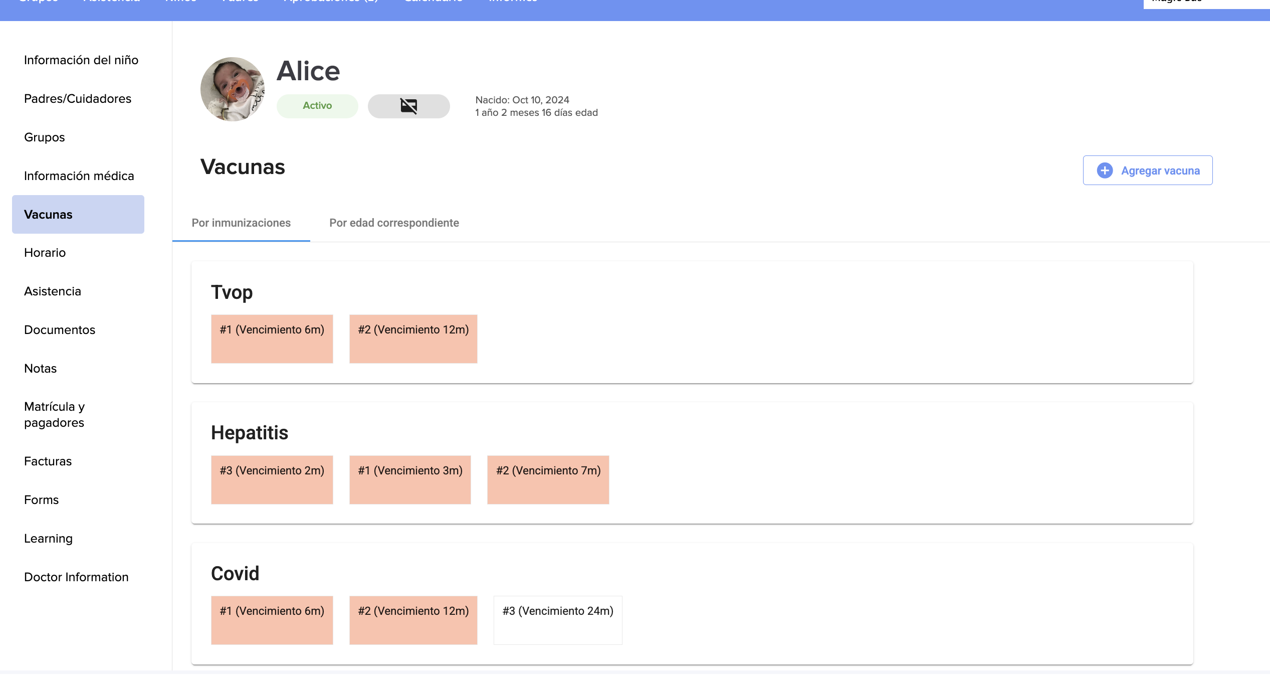 3. Esto le llevará directamente al perfil del niño, en la sección de vacunas.