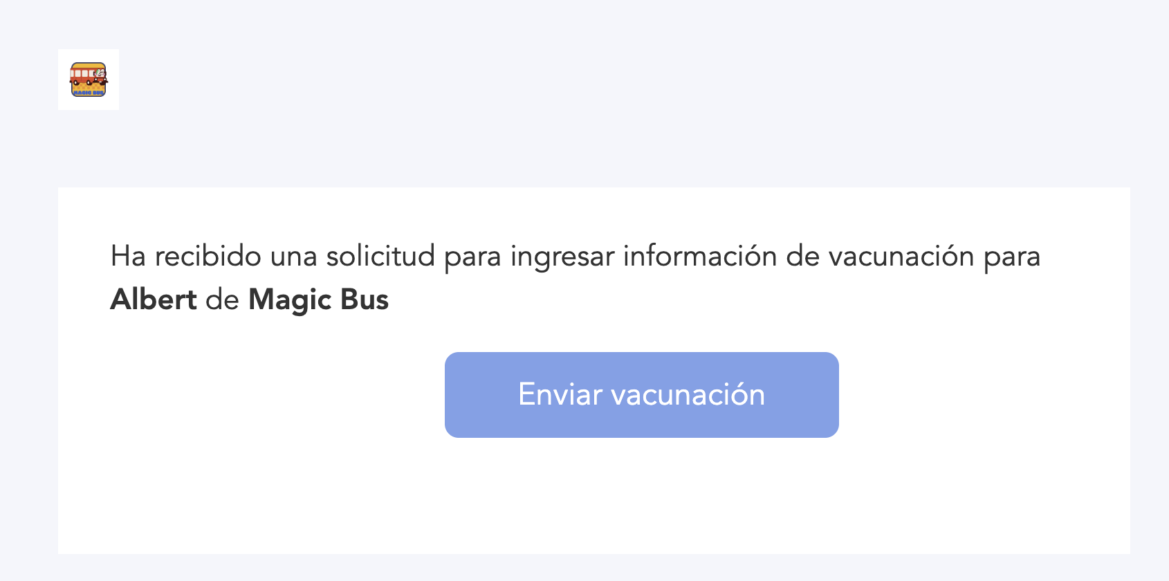 Notificar a los padres enviará un correo electrónico solicitándoles que ingresen la fecha de la inmunización correspondiente a una edad específica y el comprobante. Una vez que el padre envía la información, esta debe ser aprobada por un administrador (se puede notificar a los administradores desde la página Requisito de Inmunización) a través de Informe de Inmunizaciones > Por revisar.