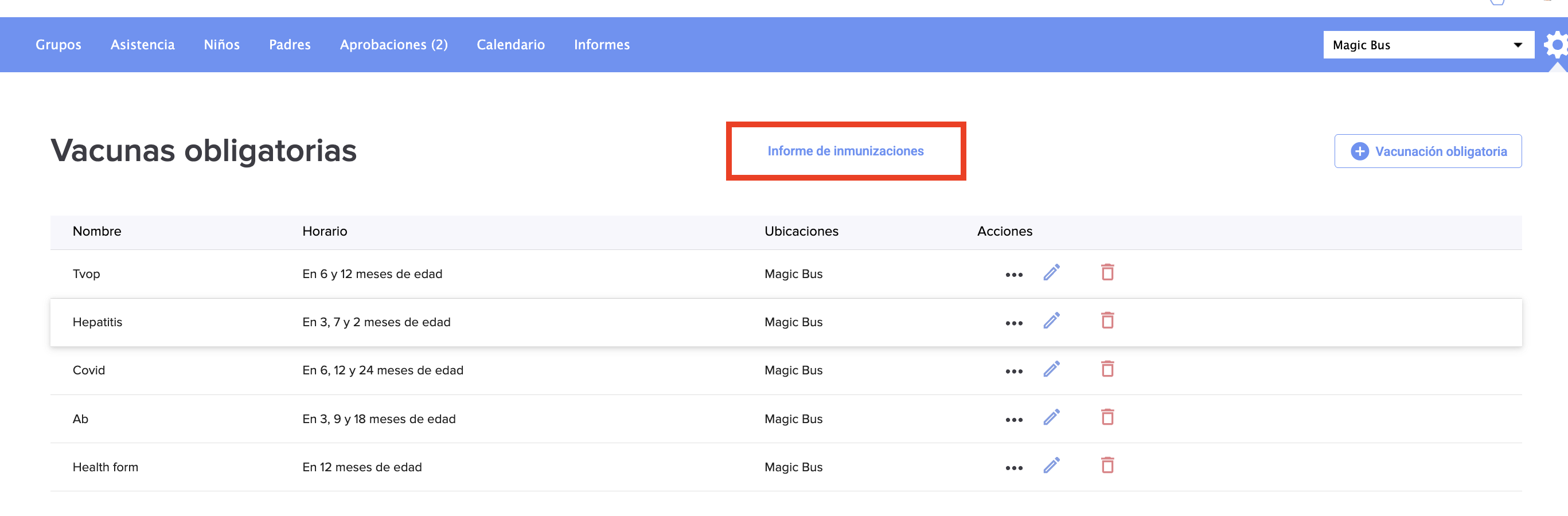 Puede acceder al informe desde Configuración del centro > Requisito de Inmunización.