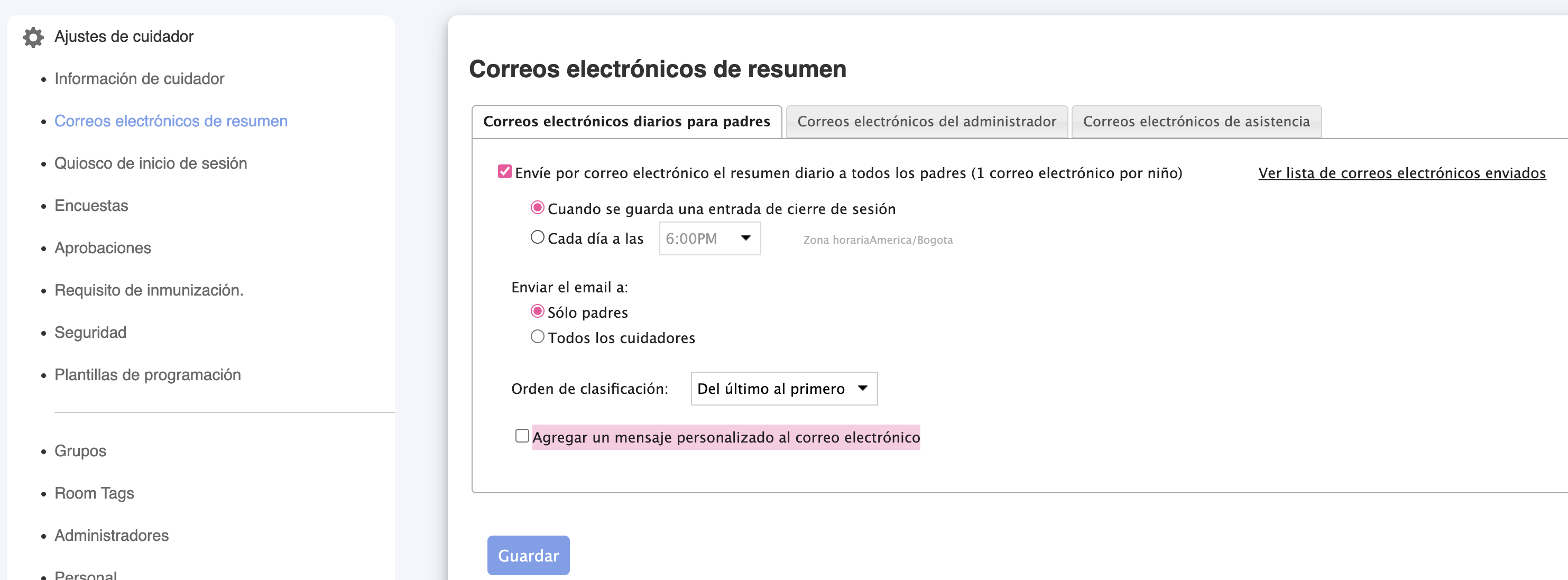 3. Seleccione la opción "Correos electrónicos de resumen".