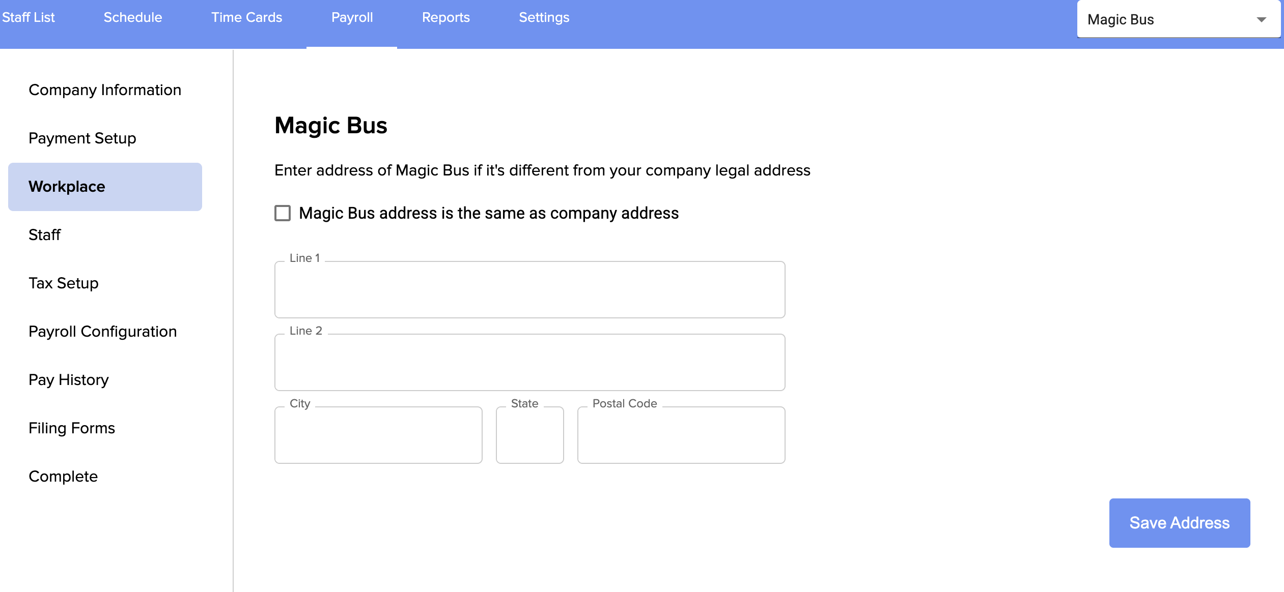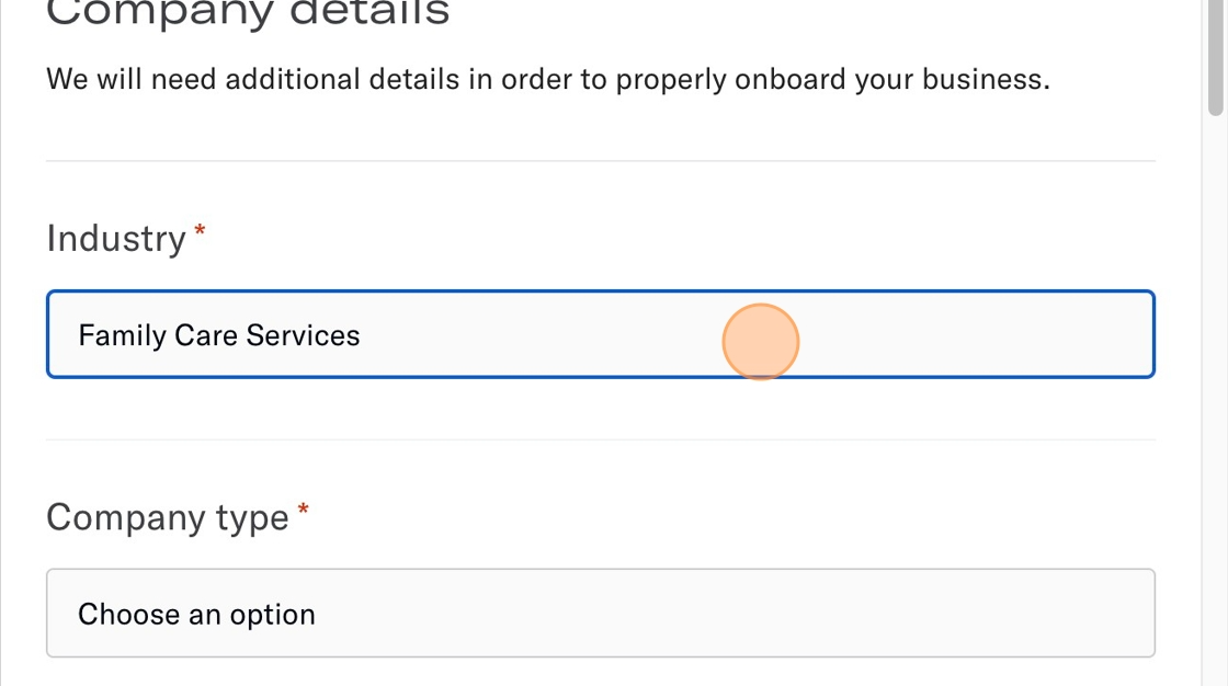A continuación, deberá ingresar el nombre legal y la dirección de su empresa.