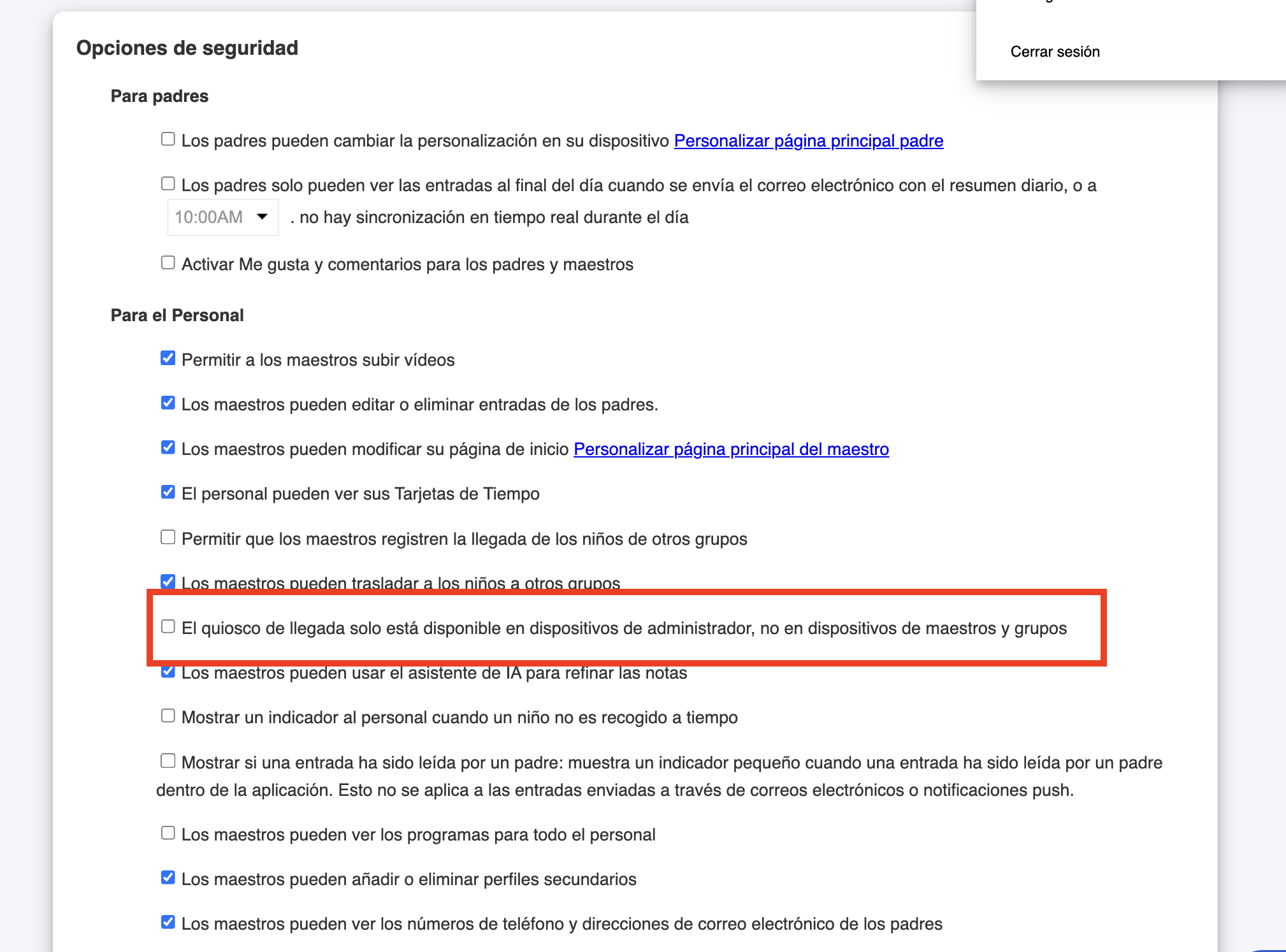 Si prefieres que los maestros no tengan acceso al quiosco de llegada, sigue estos pasos: